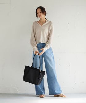 ぱっと肩掛けしやすく、全体のバランスにもこだわったロングハンドルトートバッグ。