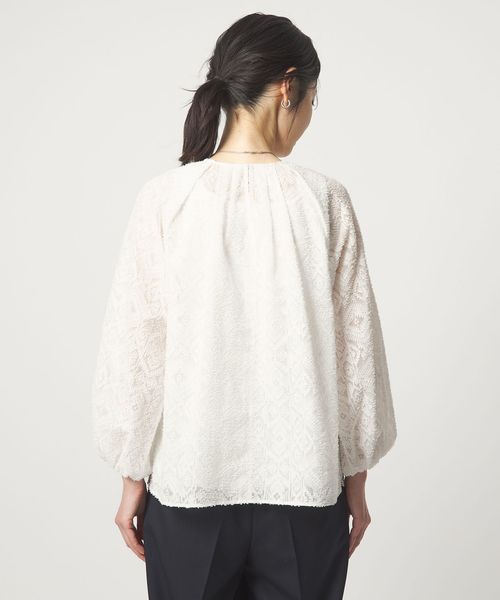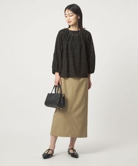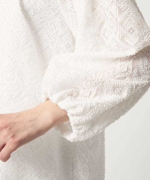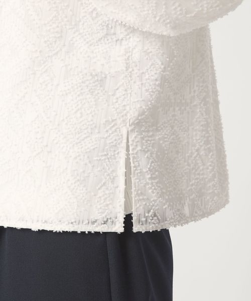 ほどよいシアー感のあるジャガード生地が華やかな着こなしに。