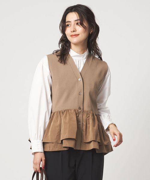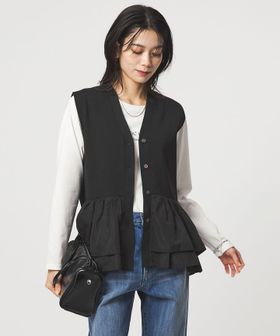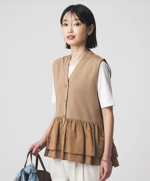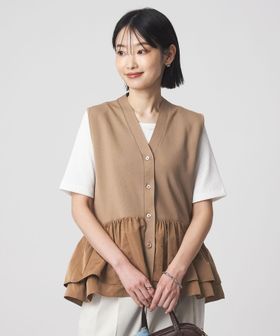 フリル ドッキング ペプラム ニット ジレ ウォッシャブル