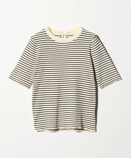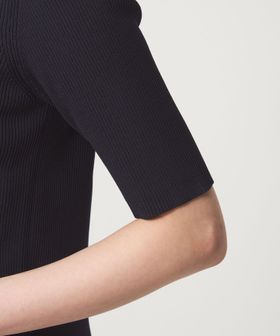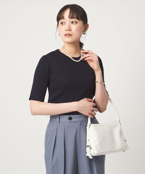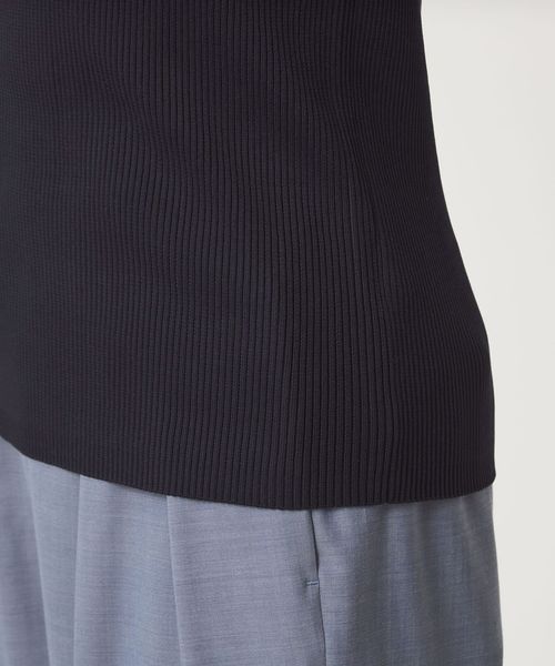 程よくタイトなシルエットですっきりとした着こなしを叶えてくれるリブニット。