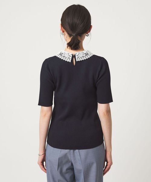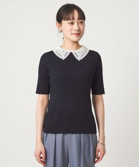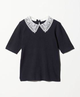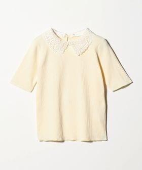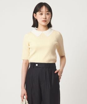 リブ エリレース 2WAY 5分袖 ニット プルオーバー