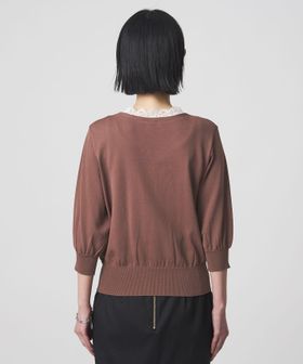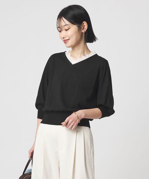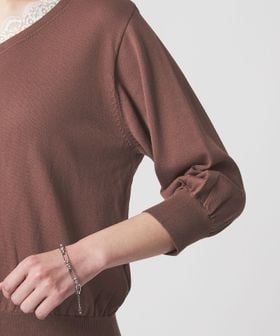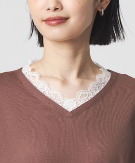 程よい肉感のあるニットに、ネック部分にはレースをドッキングしたデザイン。