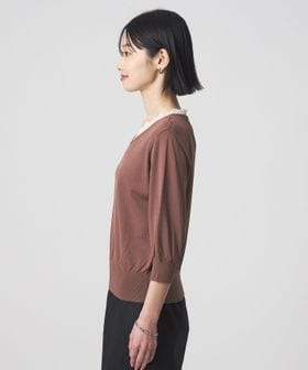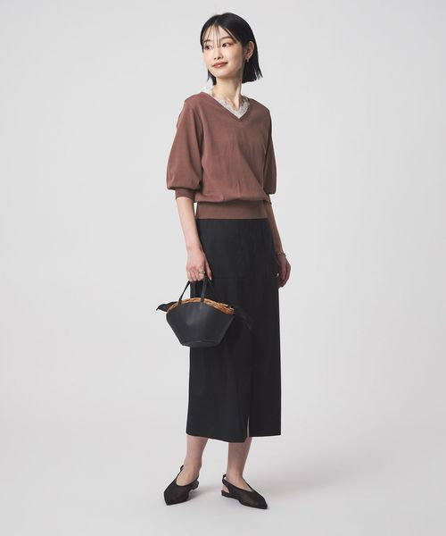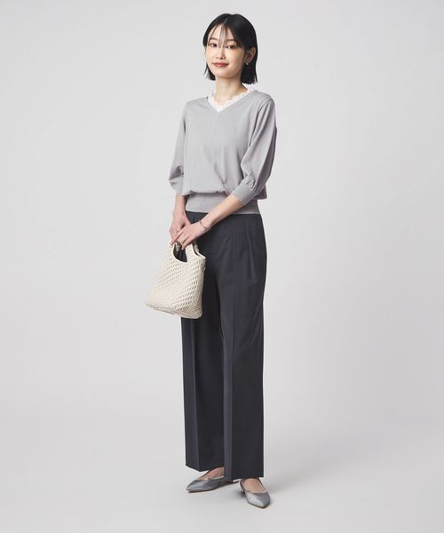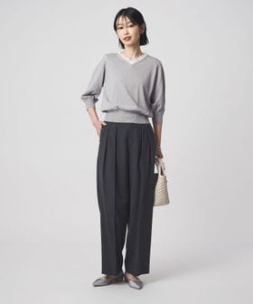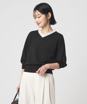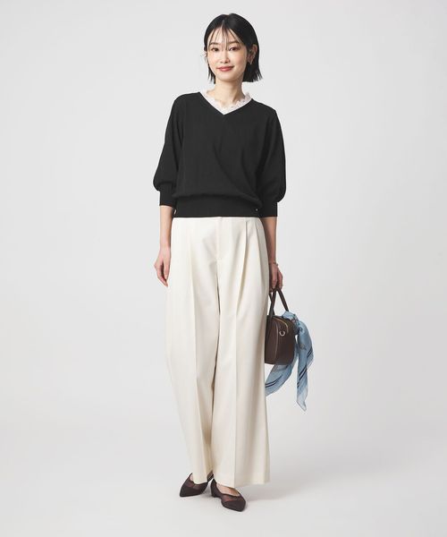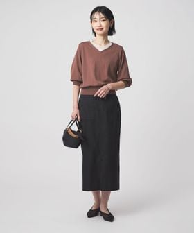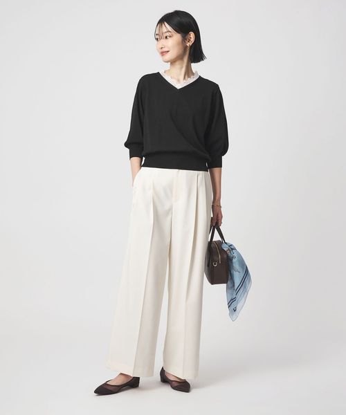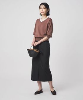 Vネックのデザインが顔まわりをすっきりとした印象に。