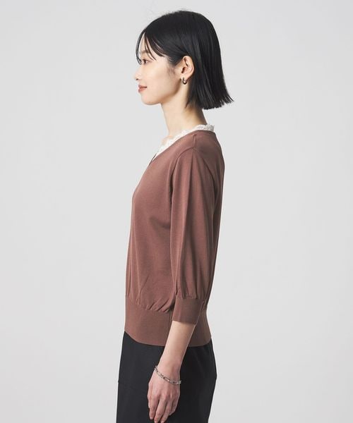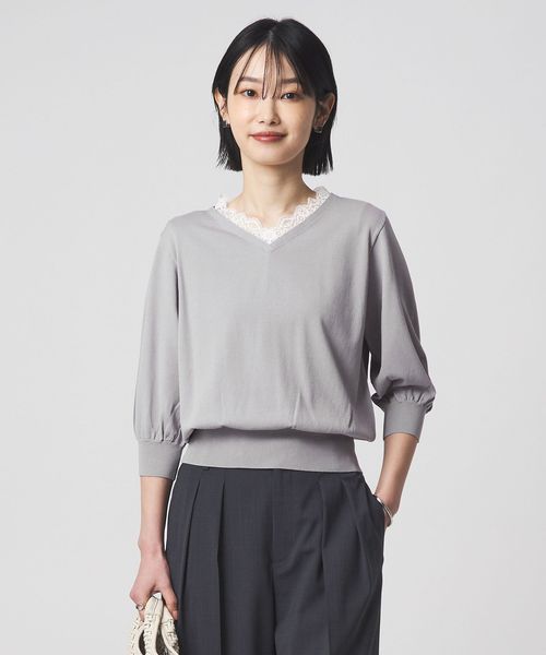ネック部分にレースがドキングされたデザインのニット。