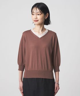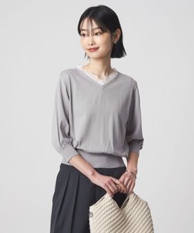 レースドッキングデザインが大人フェミニンなニットプルオーバー