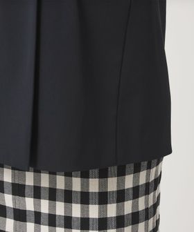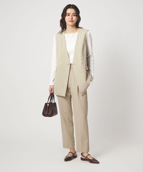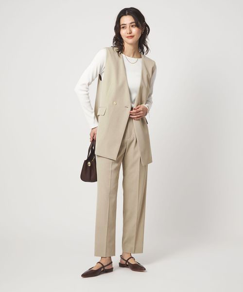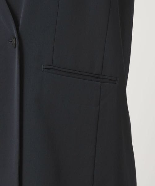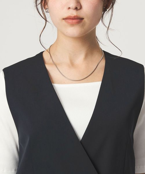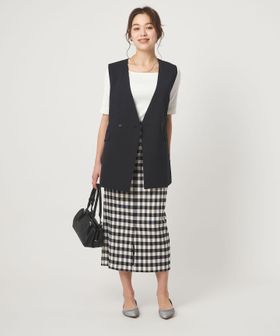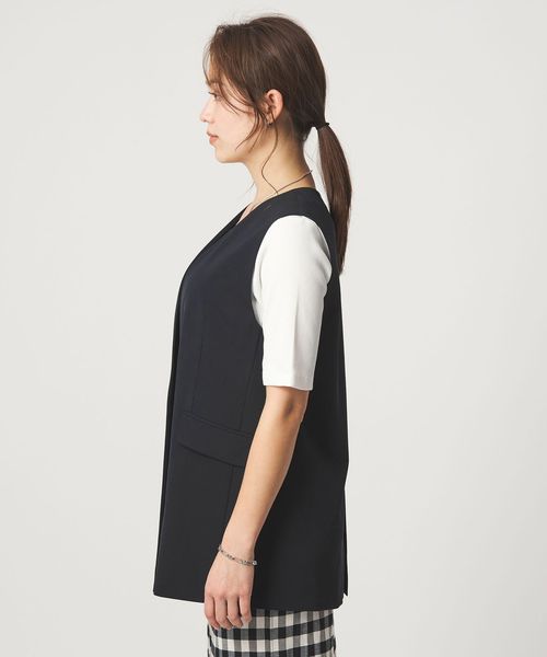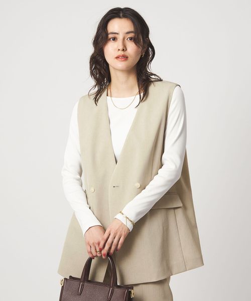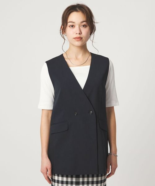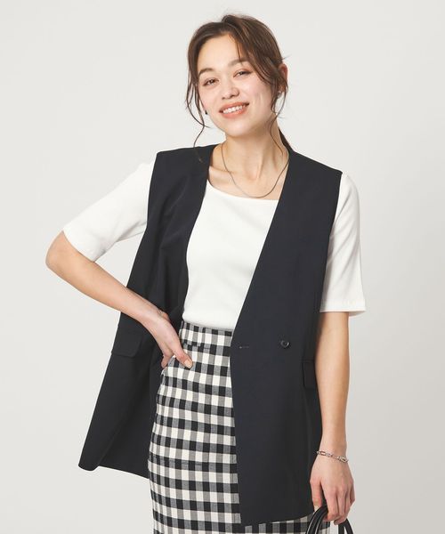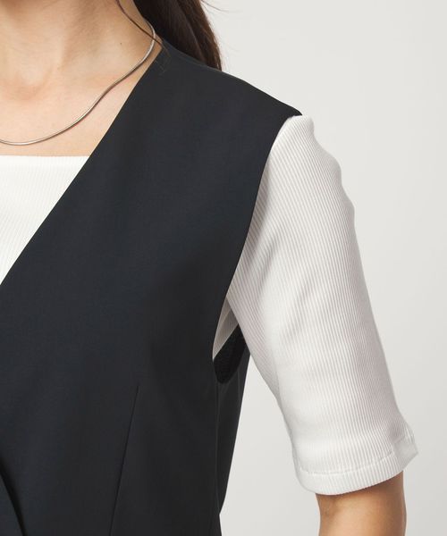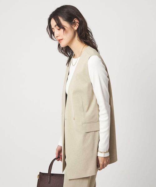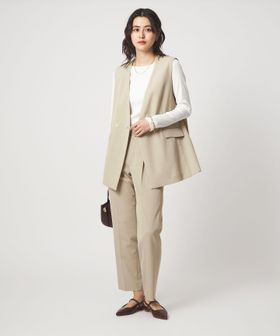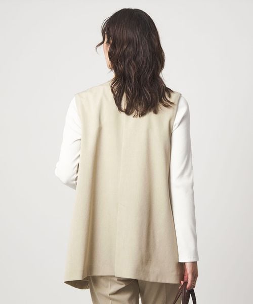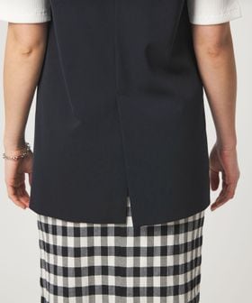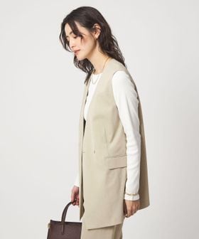 暑い時期にも、涼し気に着用いただけるノーラペルデザインのジレ。