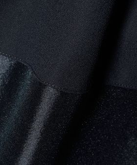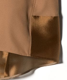 後ろ裾部分には、光沢感と張りのある華やかな印象の素材をドッキングしました。