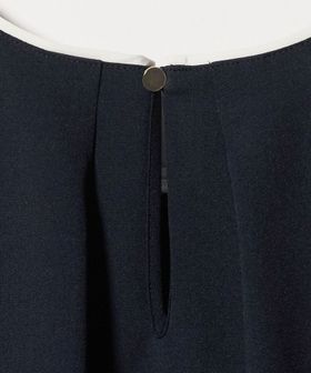 首元・フロントにはいった配色がコーディネートのアクセントに。