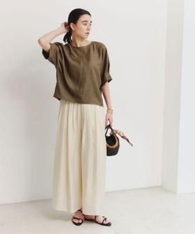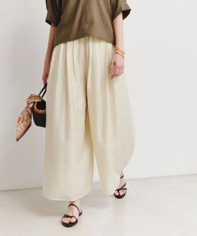 シアー感と微光沢のある素材が上品な印象のイージーパンツ。