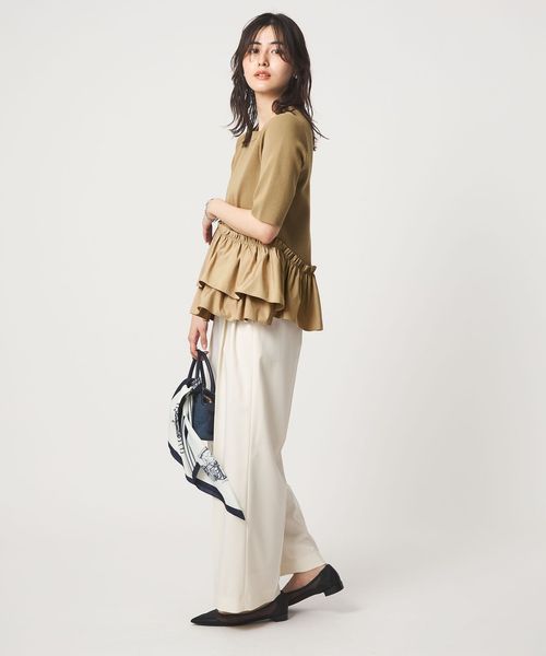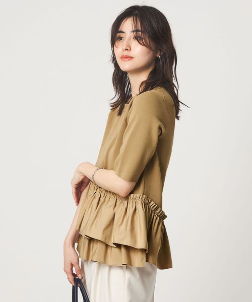 ニット素材にギャザーを寄せたフリルをフロントに二段施し、着映えする一着に仕上げました。