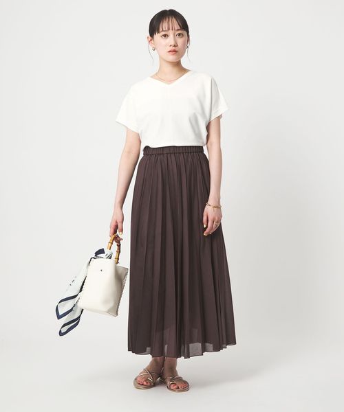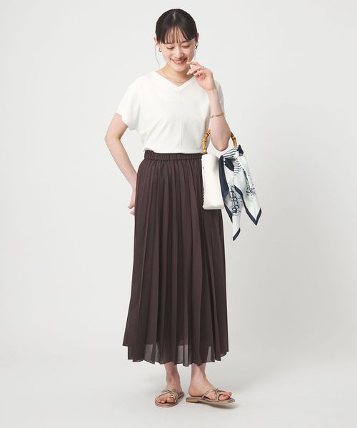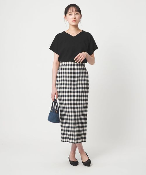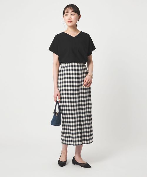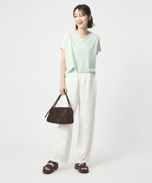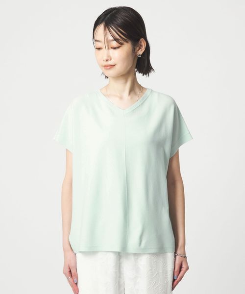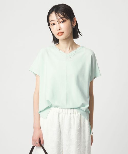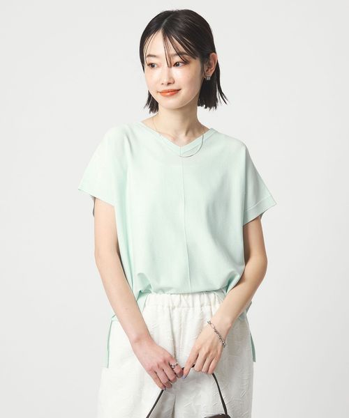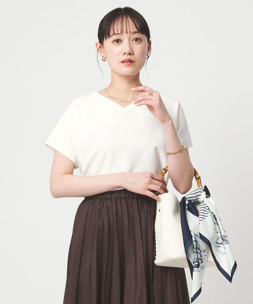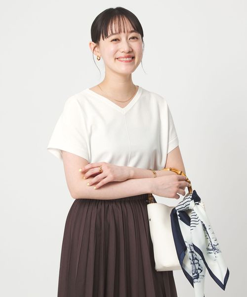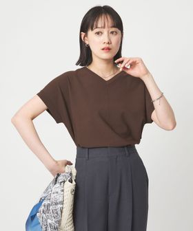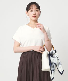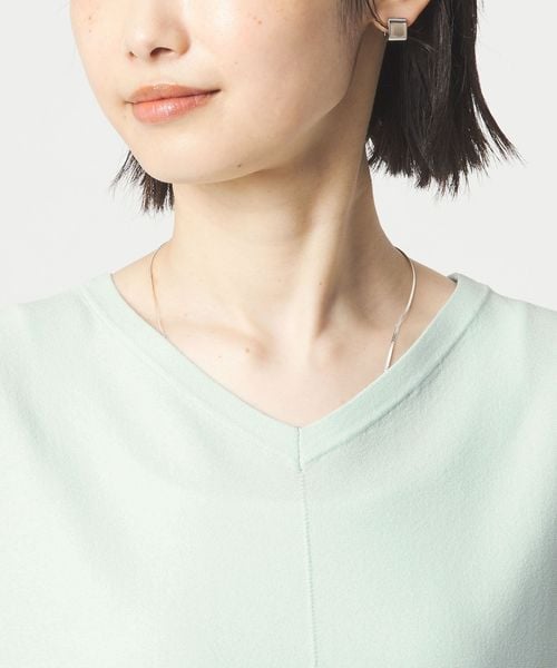 Vネックのデザインが顔まわりに抜け感をプラスします。