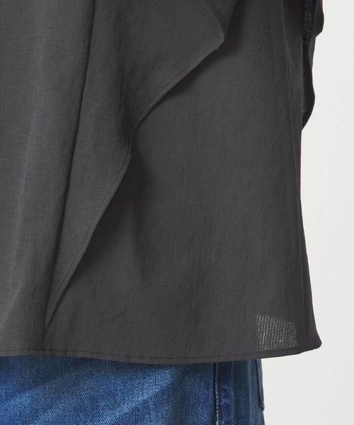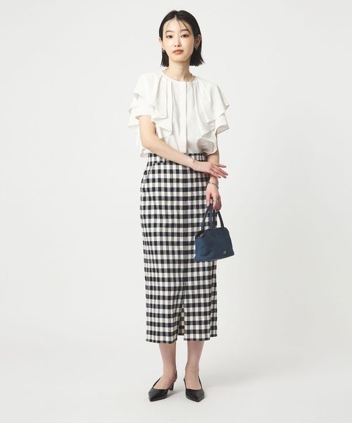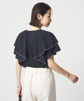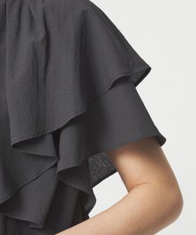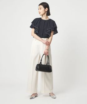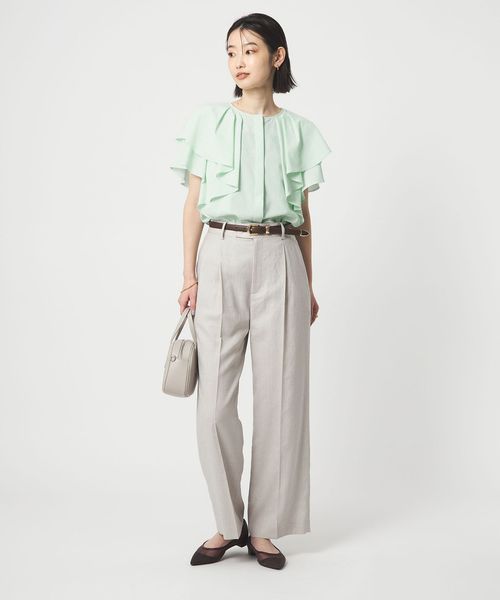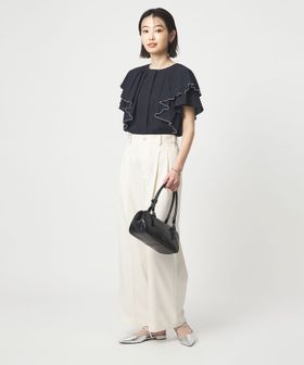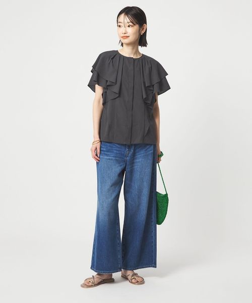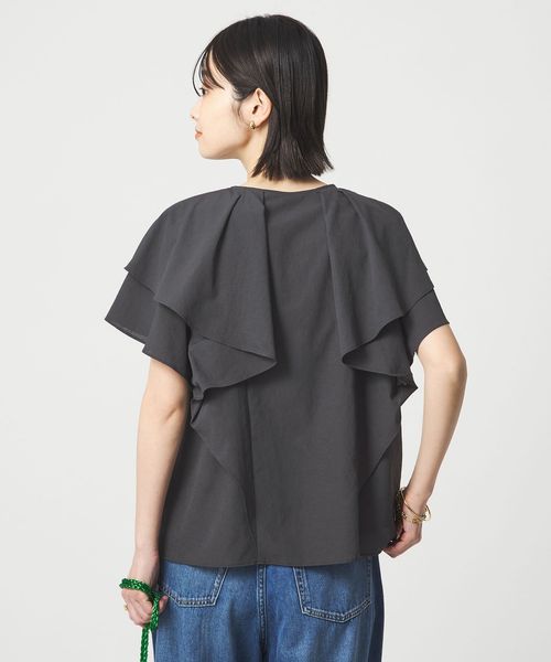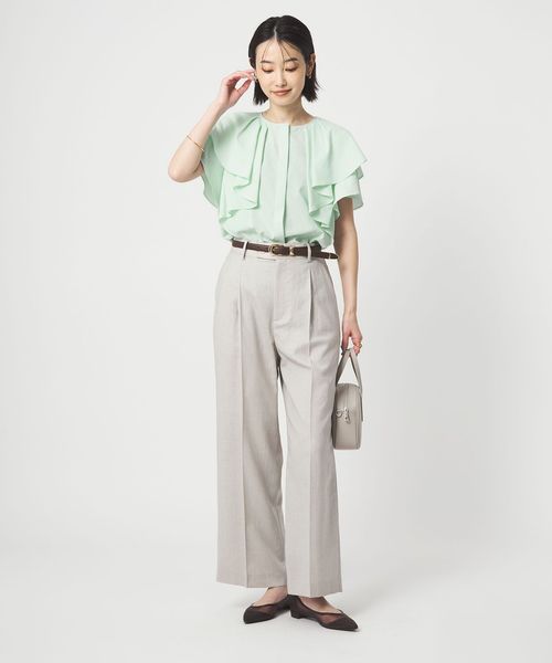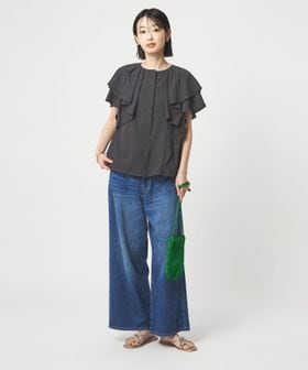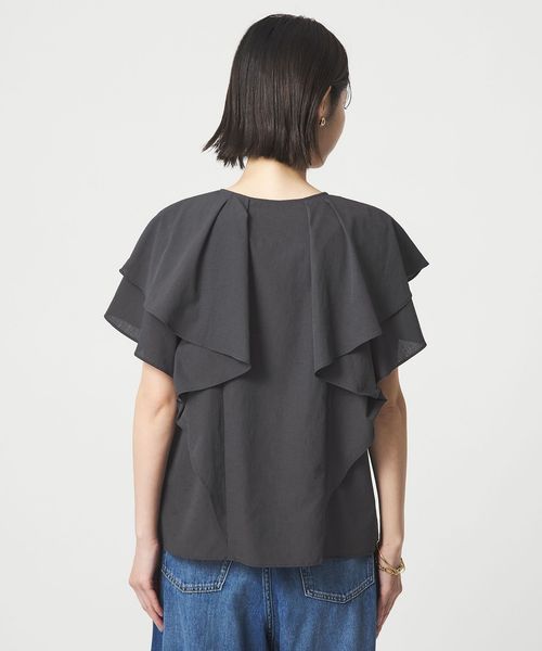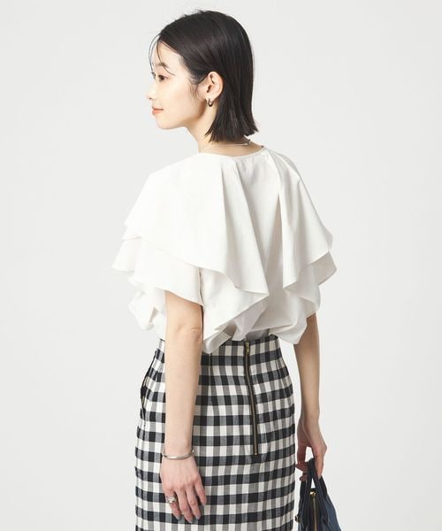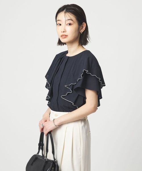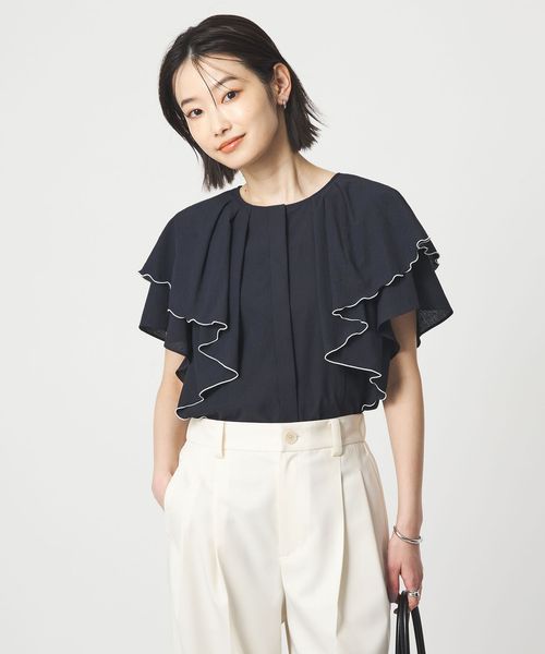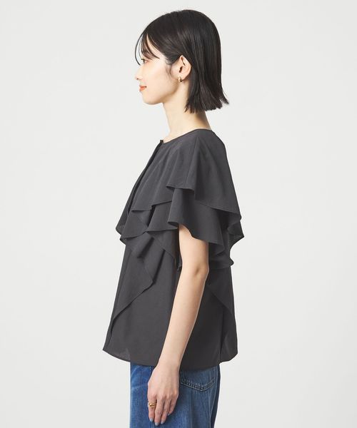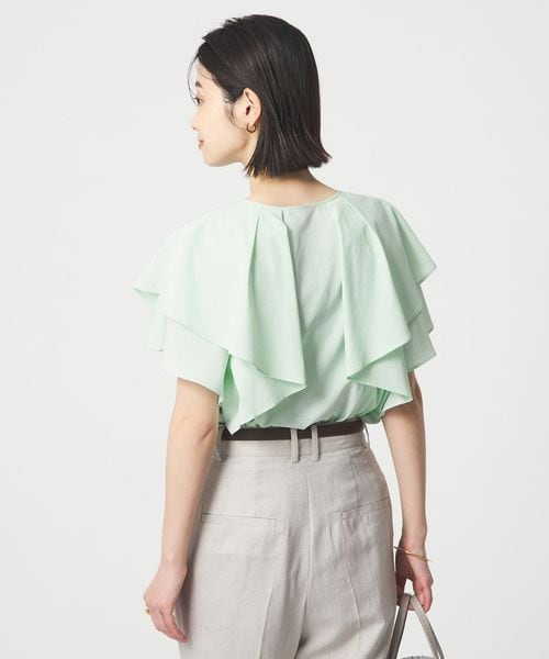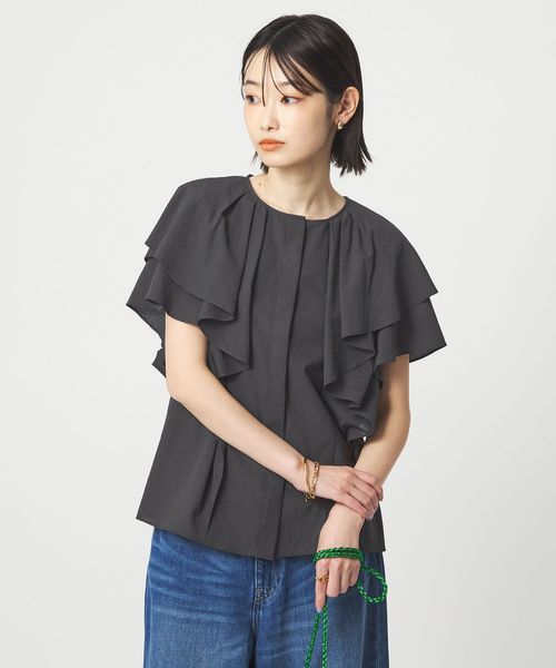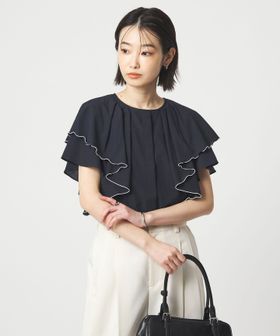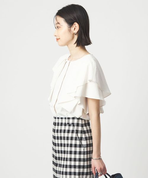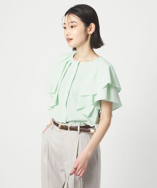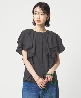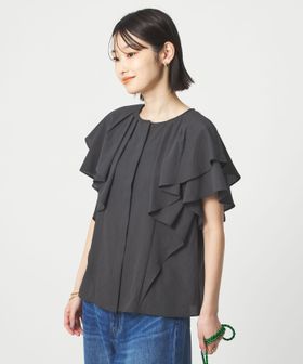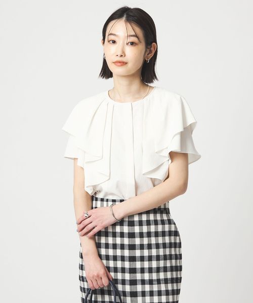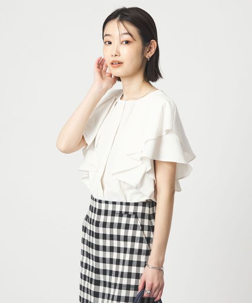 ラッフルデザインがぱっと目を惹くブラウス。