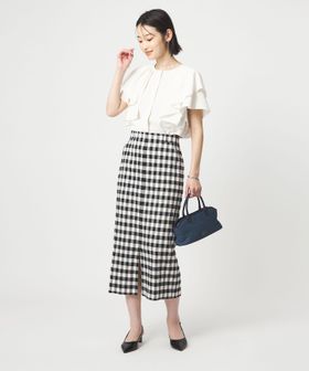 同シリーズのスカートを合わせたワンピース風の着こなしが一押し。