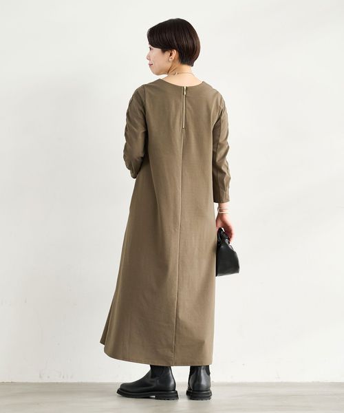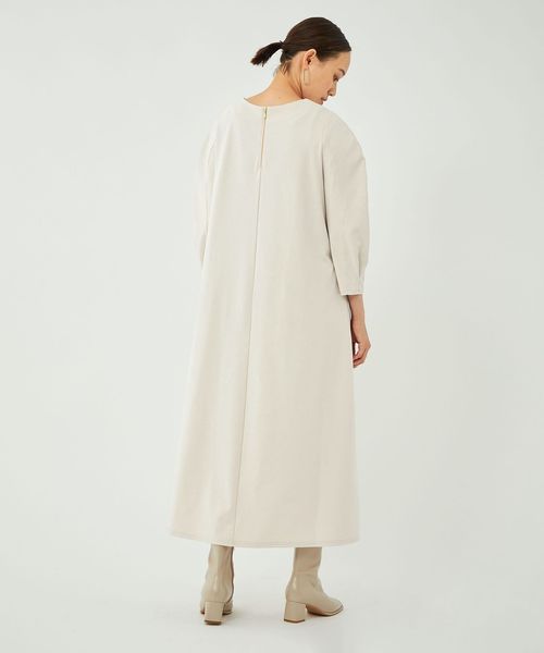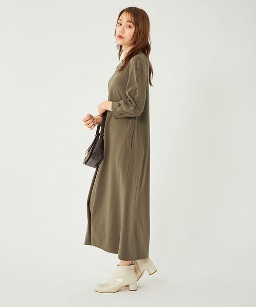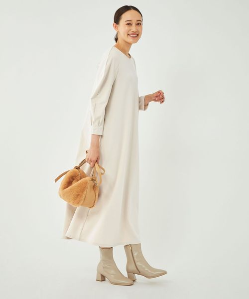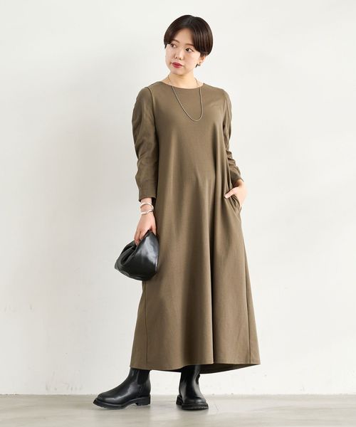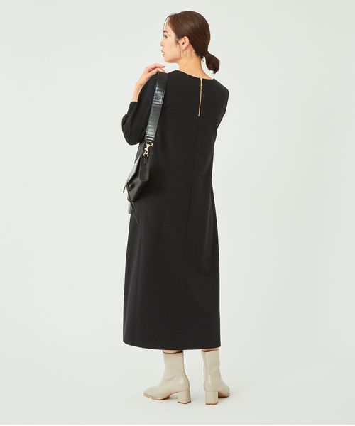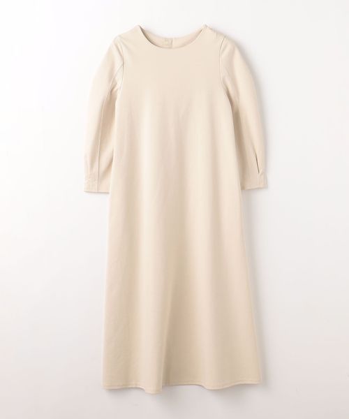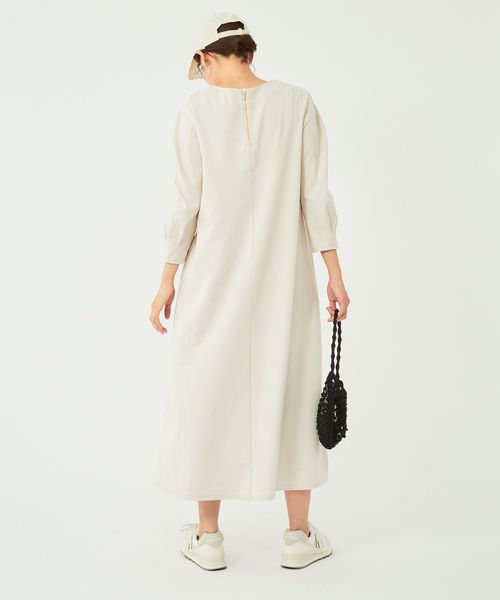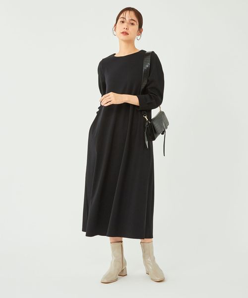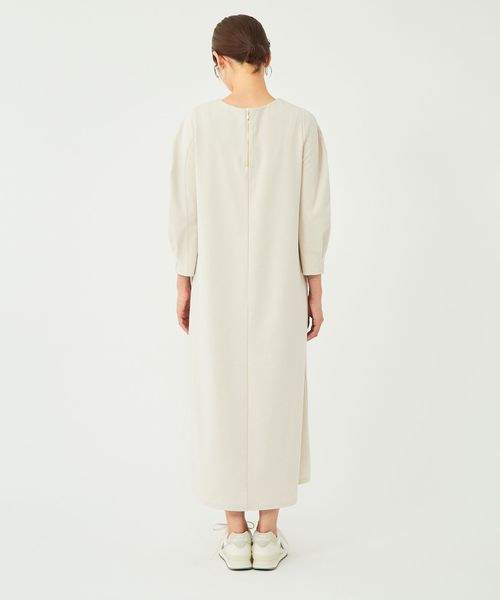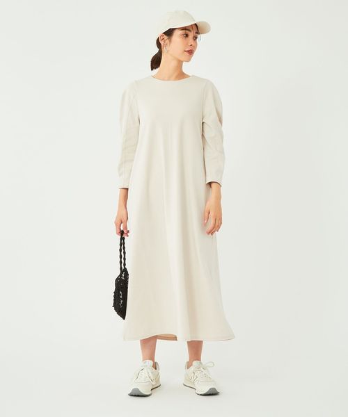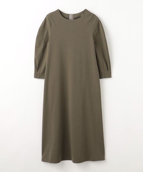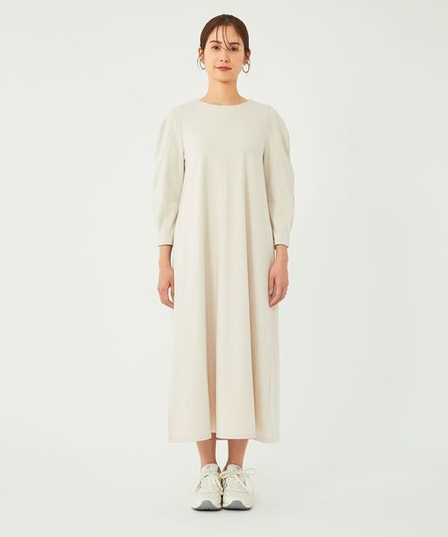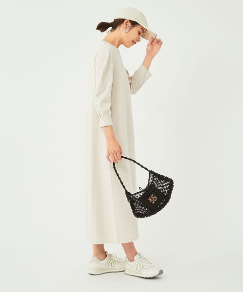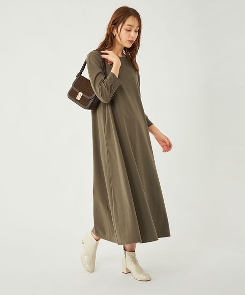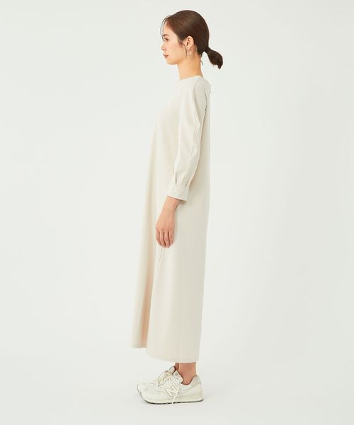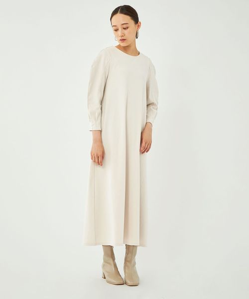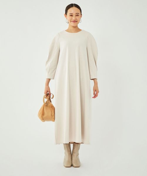 シンプルながらも1枚で決まるクレセントスリーブのワンピース。