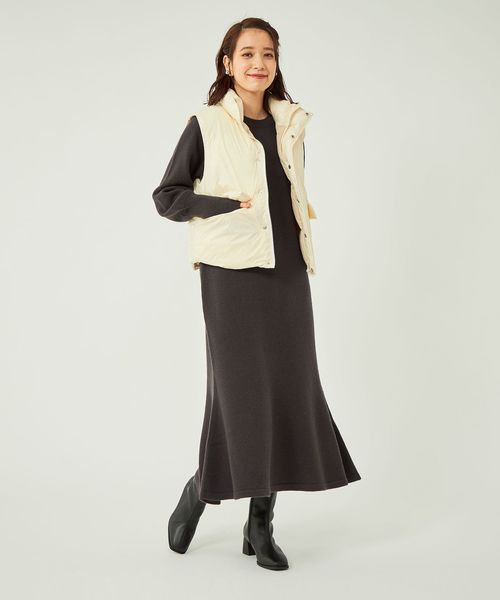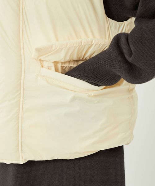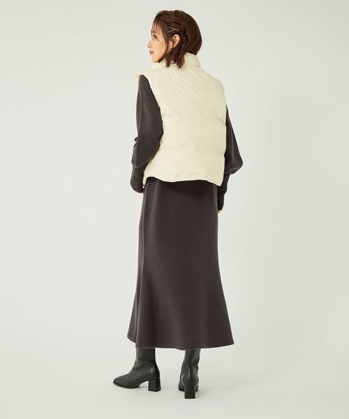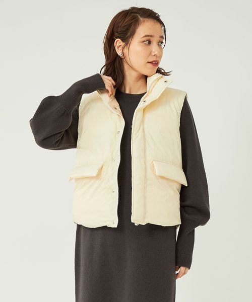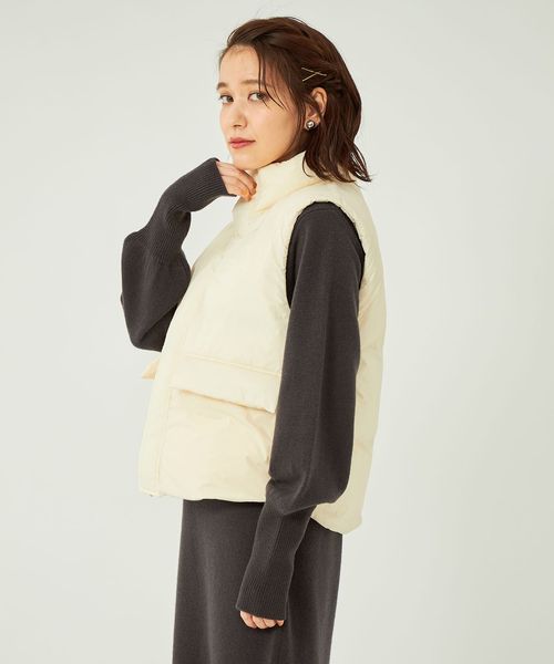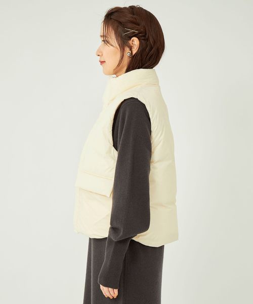 カジュアルな印象のダウンベストもフェミニンな雰囲気で着用いただけけるおすすめの一着です。