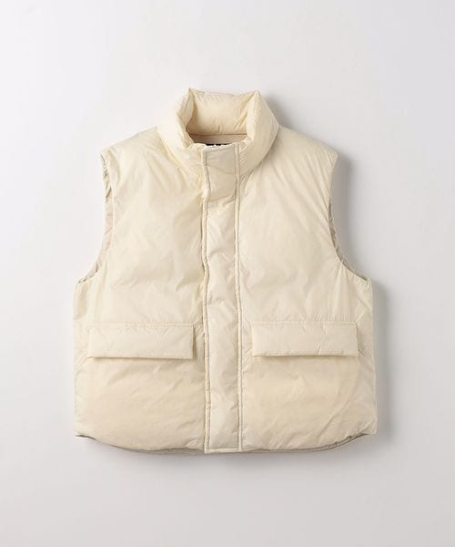形から別注したショート丈でコンパクトなシルエットのダウンベスト。