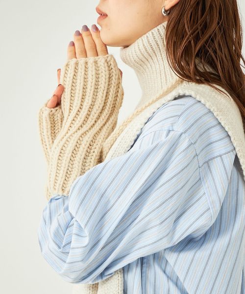 ジャケットやアウターの上から、マフラー・アクセサリー感覚で首からかけてスタイリングするのがおすすめです。