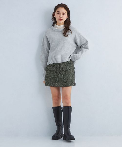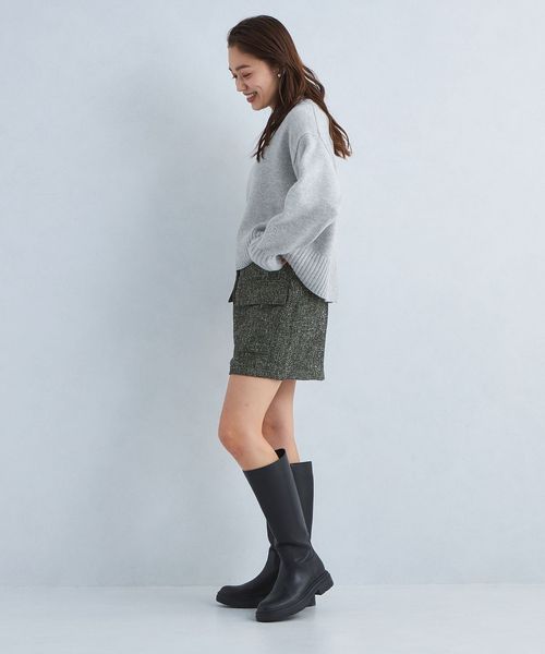 スウェットとのカジュアルなスタイリングはもちろん、ニットやカーディガン合わせのフェミニンなスタイリングも◎