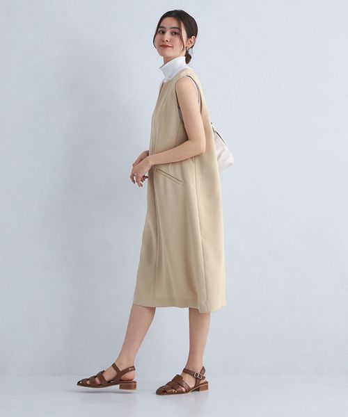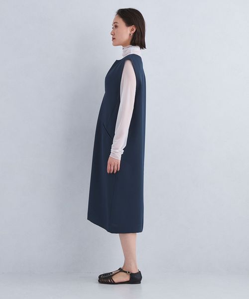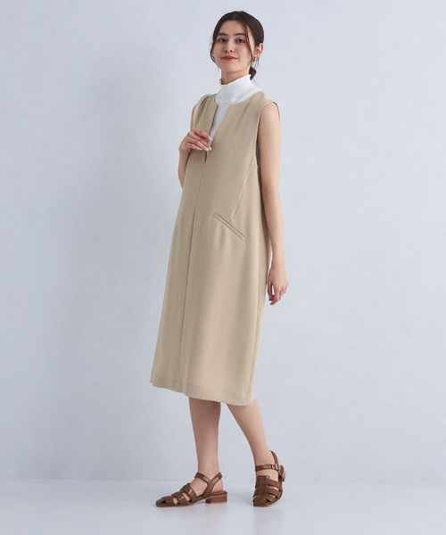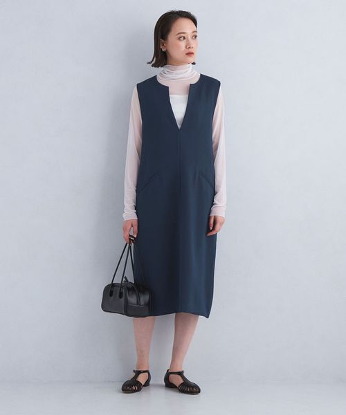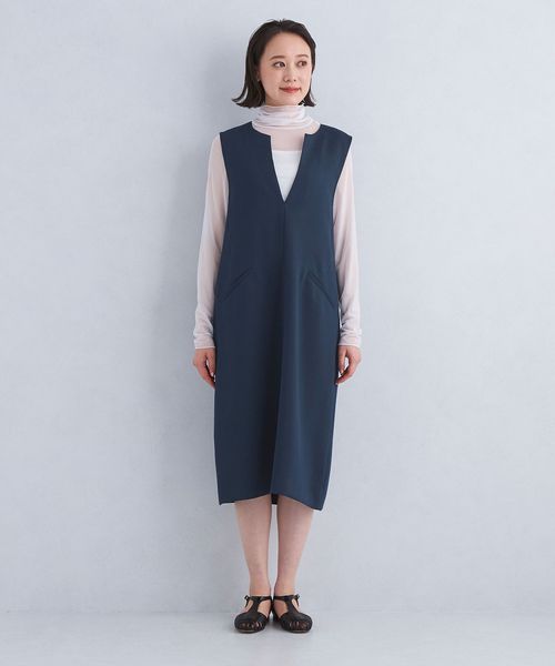深めのケーネックデザインが抜け感のあるジャンスカ。