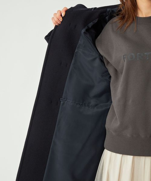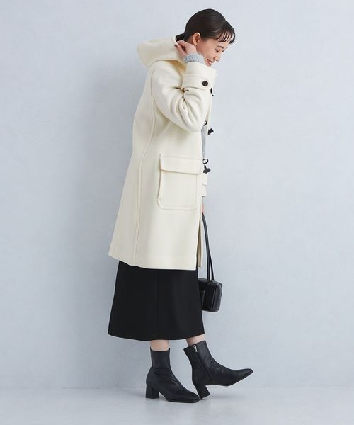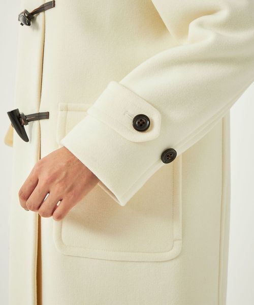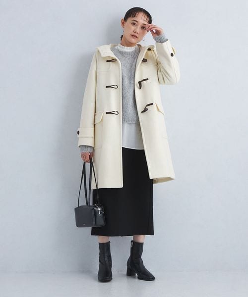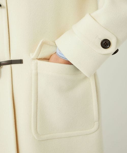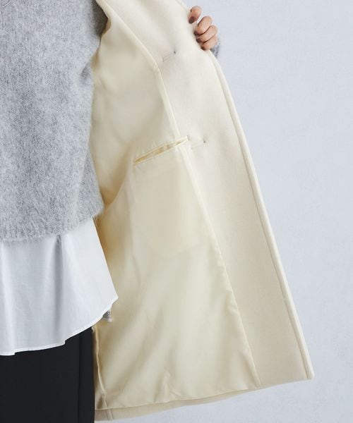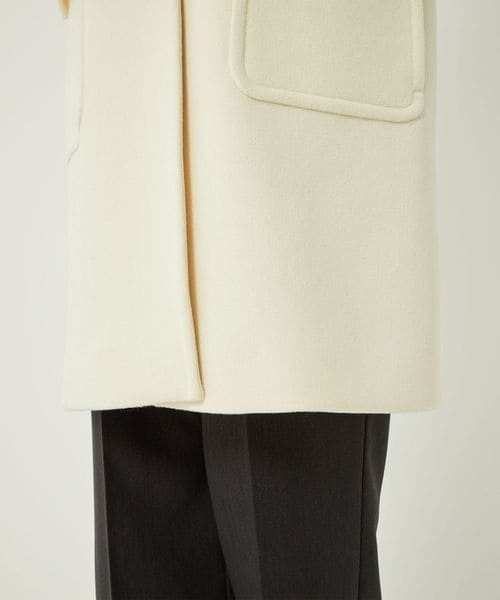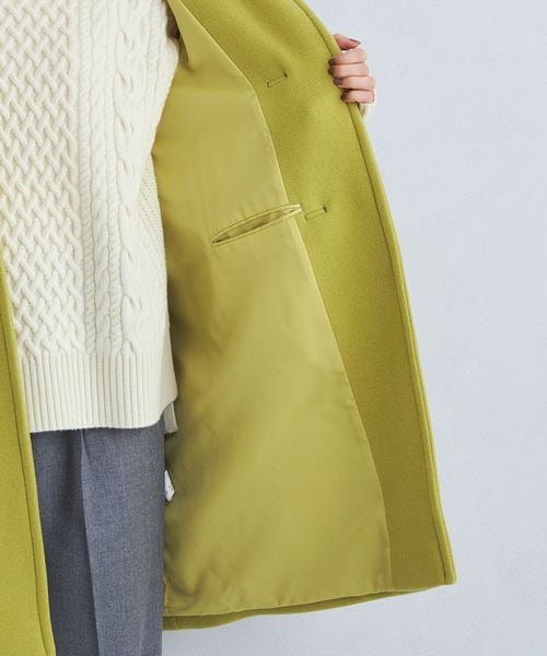 ふっくらとした立体感のある生地なので、コートのシルエットがより美しく見えるところがポイントです。