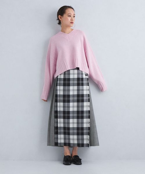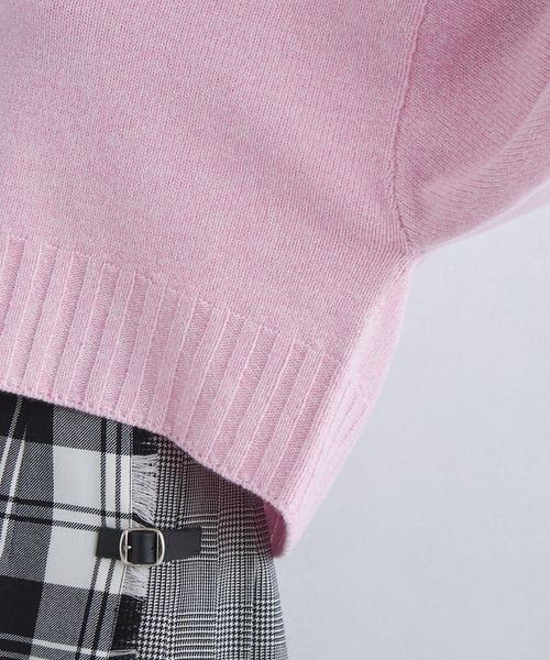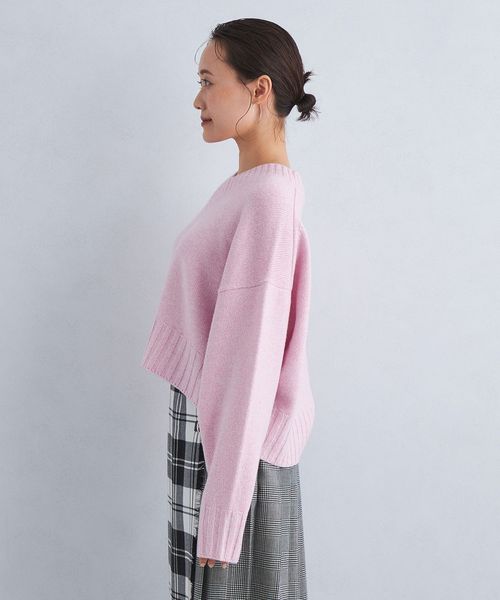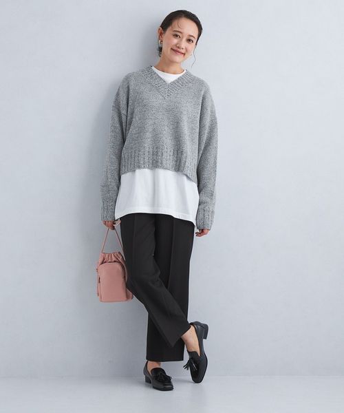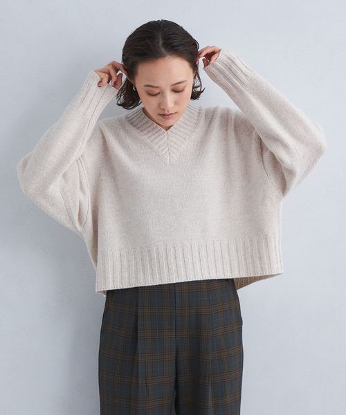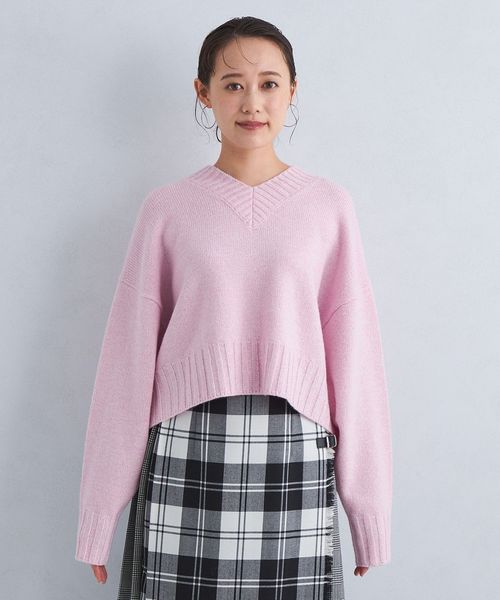 クロップド丈のデザインが新鮮な印象のVネックニット。