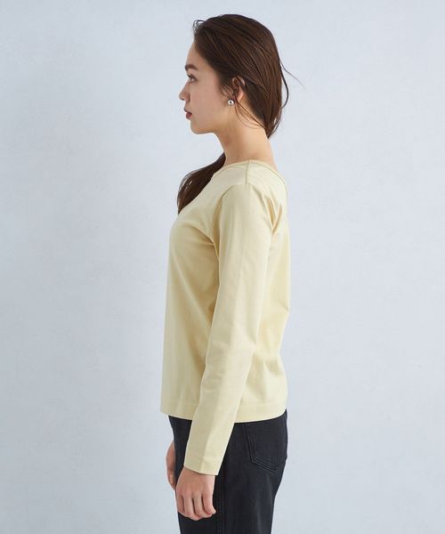 開きすぎないネックラインが顔まわりをすっきりと見せてくれます。