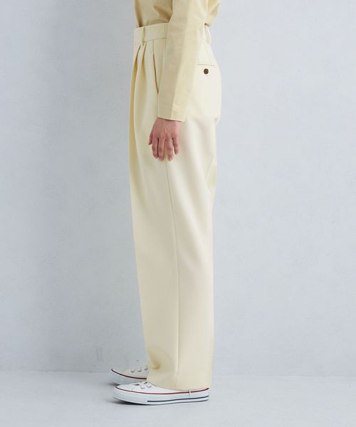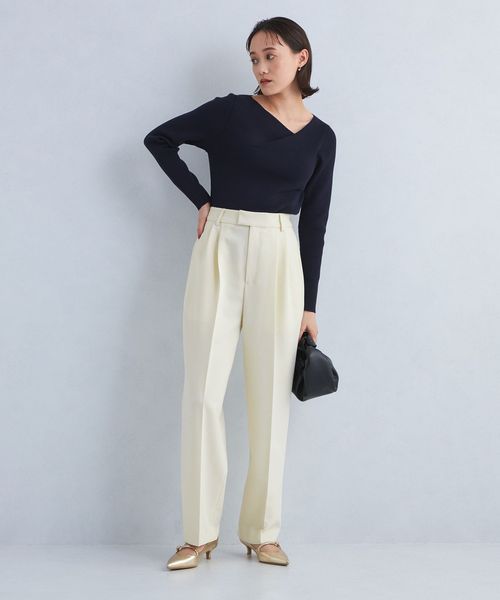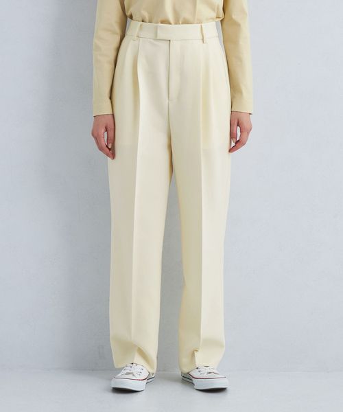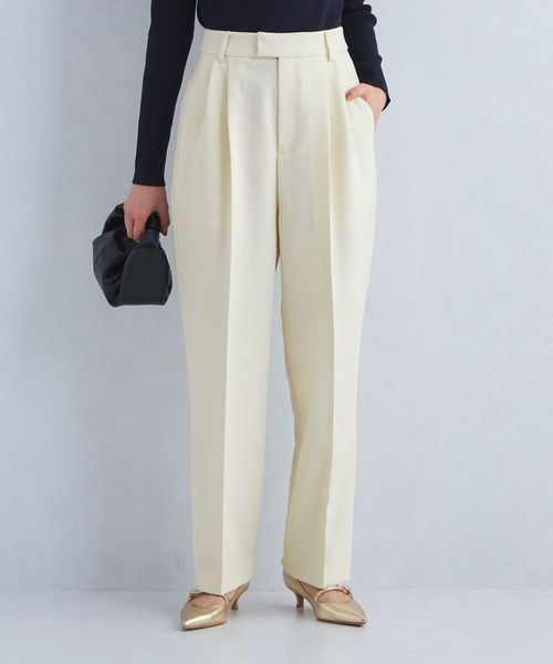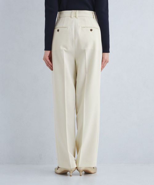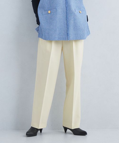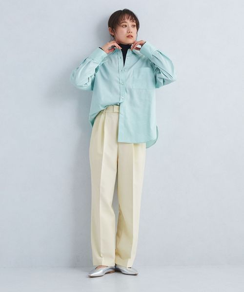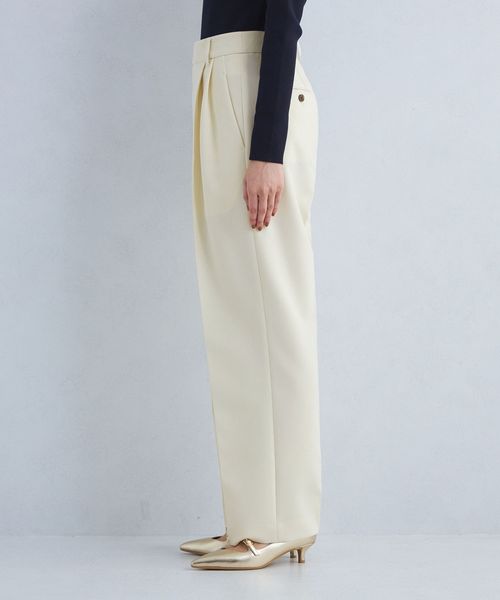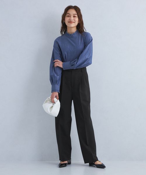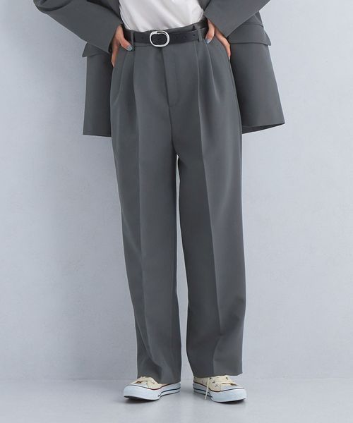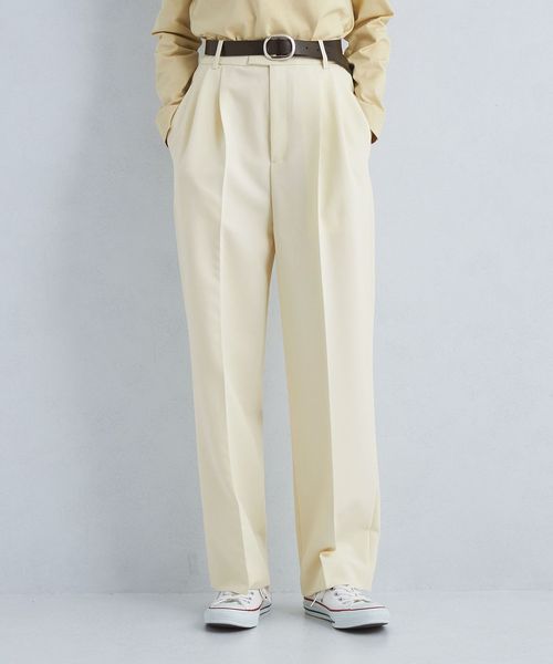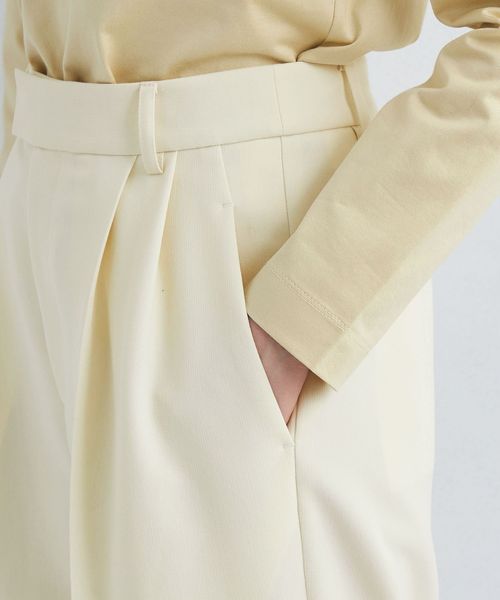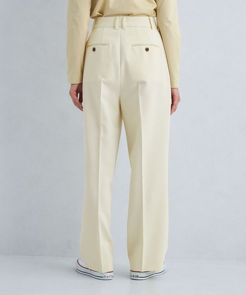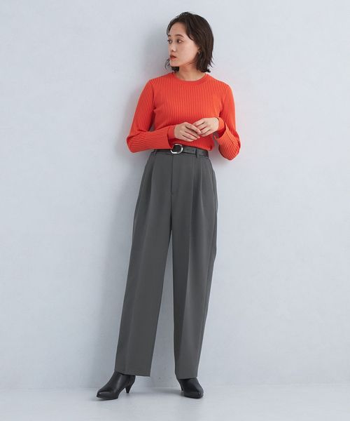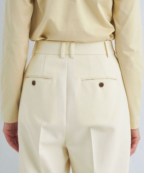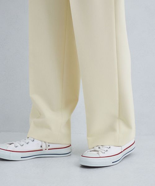 裾にかけてややテーパードのシルエットにしているので、ボリューム感のあるトップスとも合わせやすいのもポイントです。