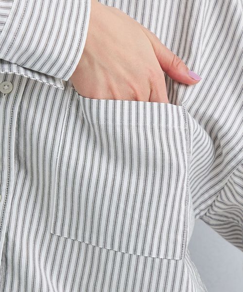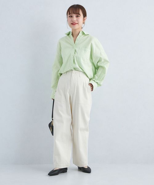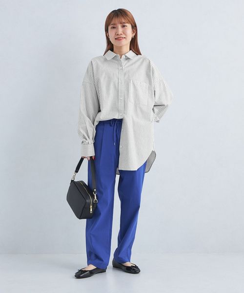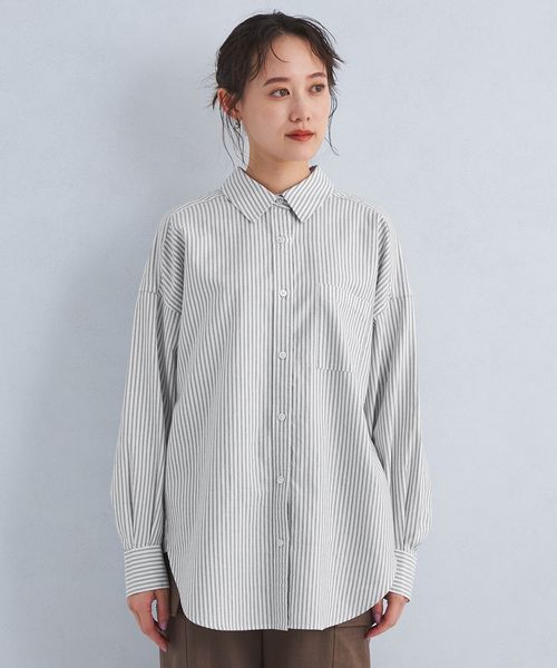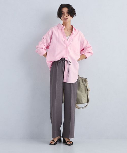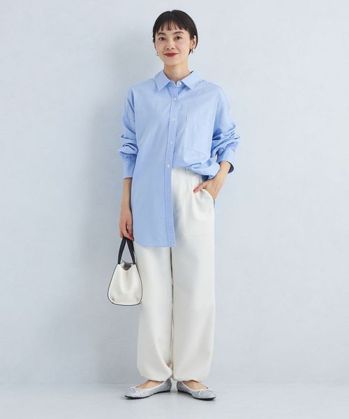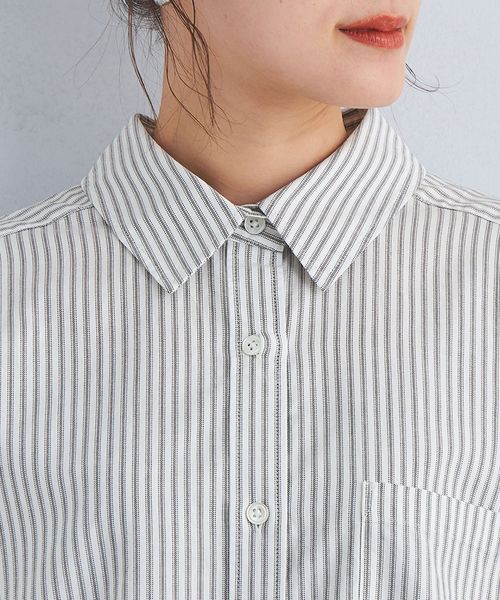 カジュアルな印象のオックス生地をやや細番手の糸にすることで、女性らしい雰囲気で着用いただけるようお作りしました。