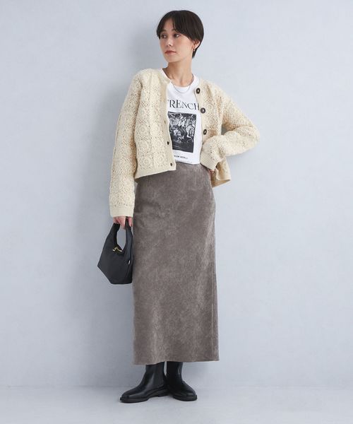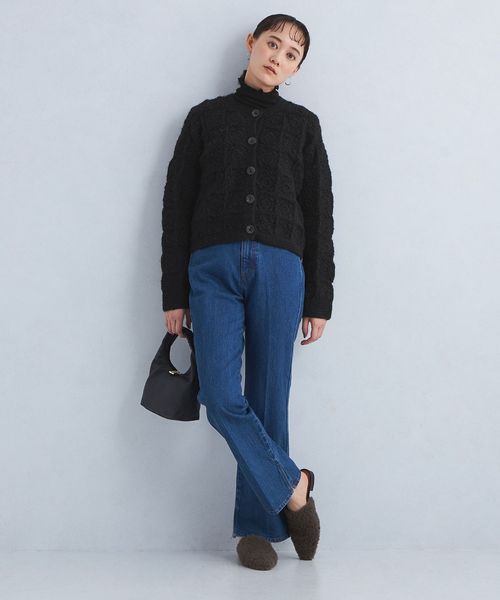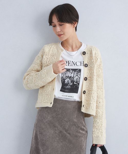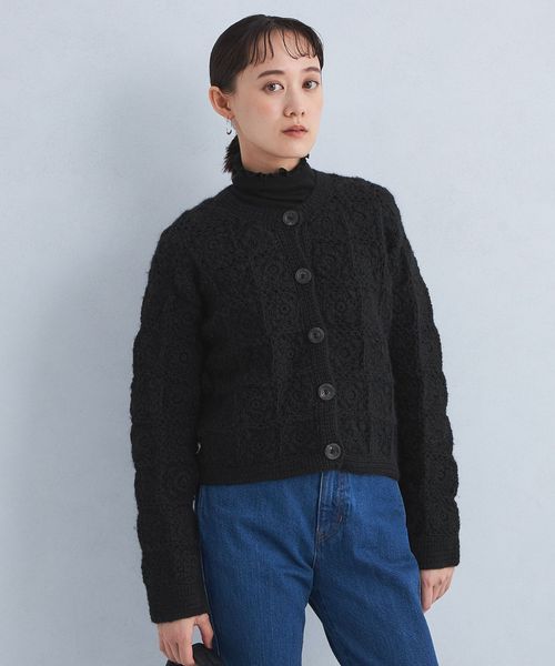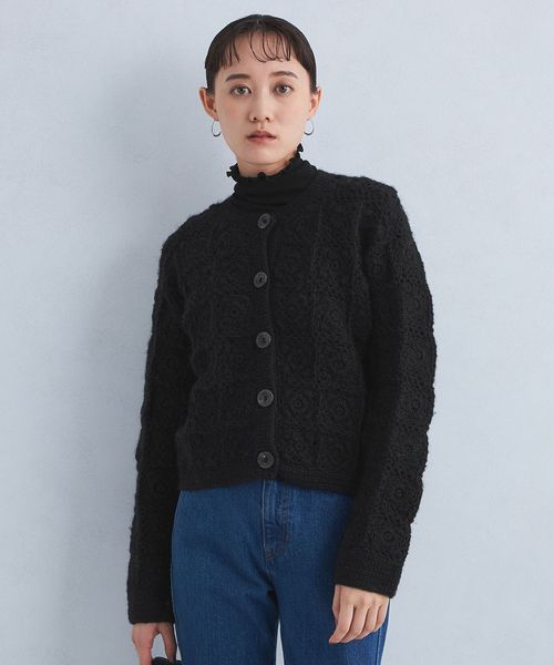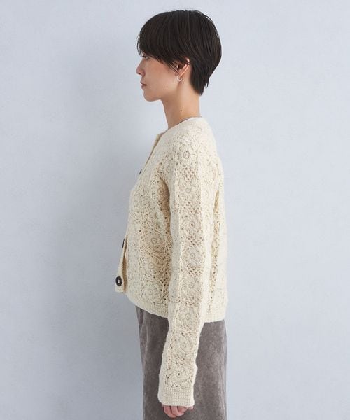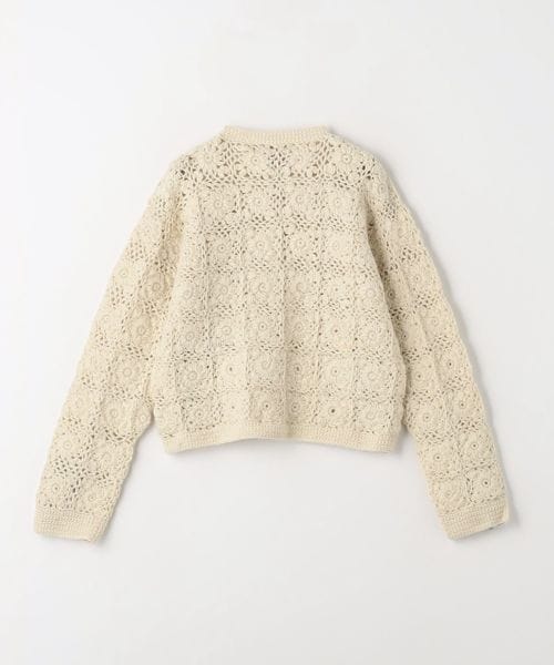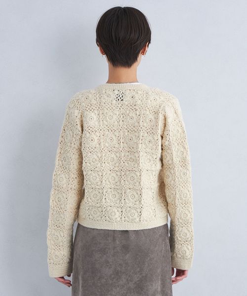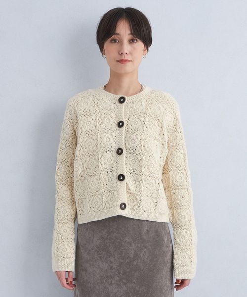 四角いお花のモチーフを一つずつつなげた別注カーディガン。