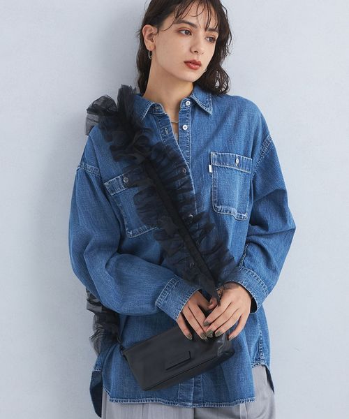 存在感のある立体的なチュールフリルのショルダーがポイントのショルダーバッグ。