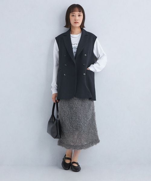 フェミニンな印象のアイテムですが、合わせるアイテムによってモード感のあるスタイリングも楽しめます。