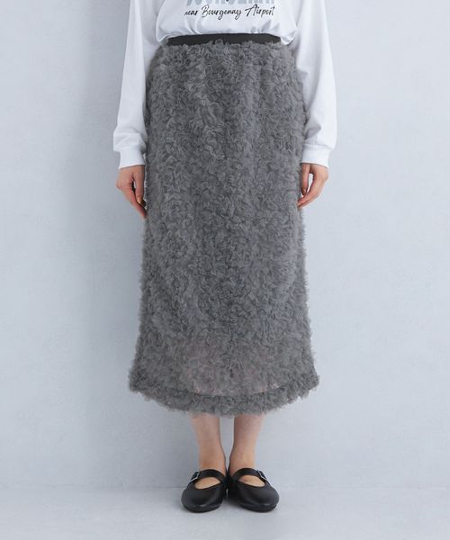 チュール素材を細かくフリルにデザインしたスカート。