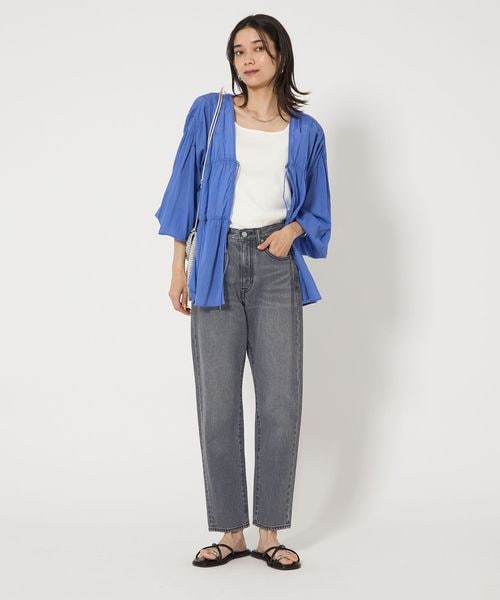 合わせるアイテム次第で、キレイめにもカジュアルにも重宝する一着です。