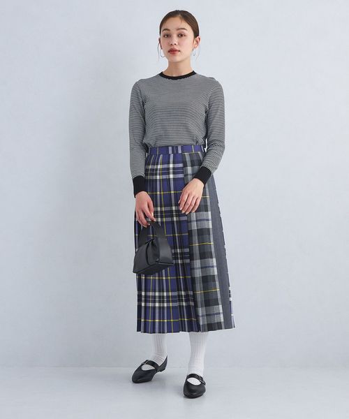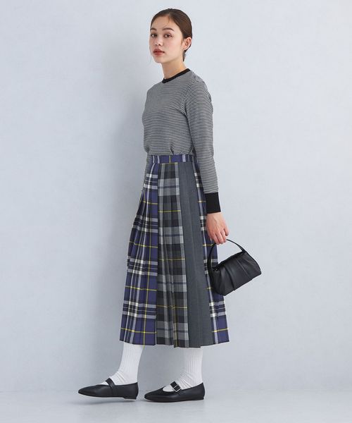 green label relaxingでは定番になりつつある、ベルトがないタイプのプリーツスカートをご用意しました。