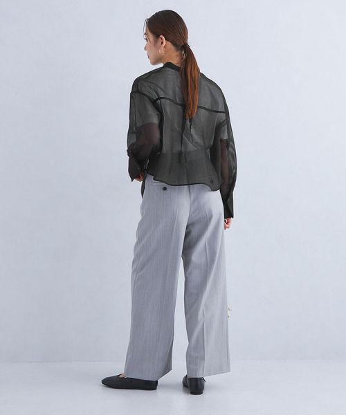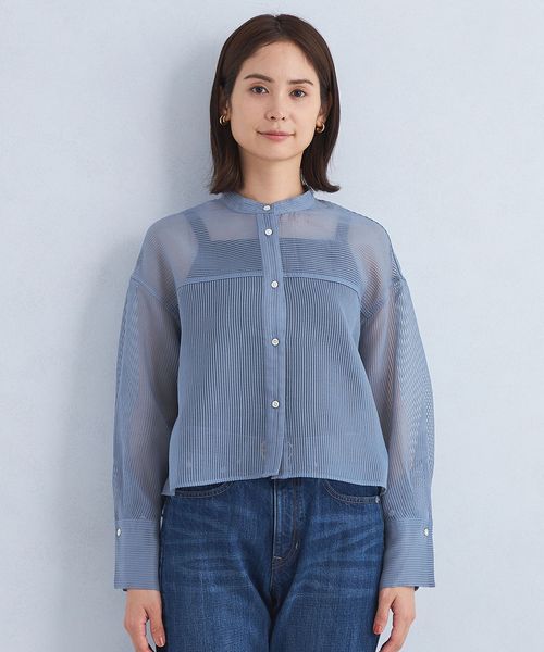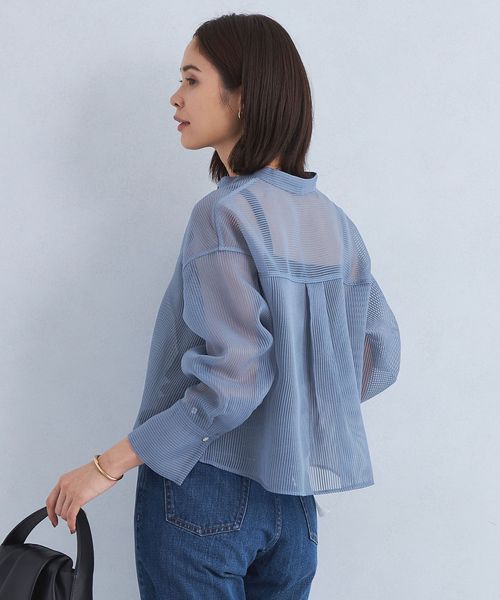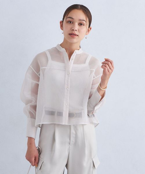 華やかさと今っぽさを両立するシアーコードレーン素材のシャツ