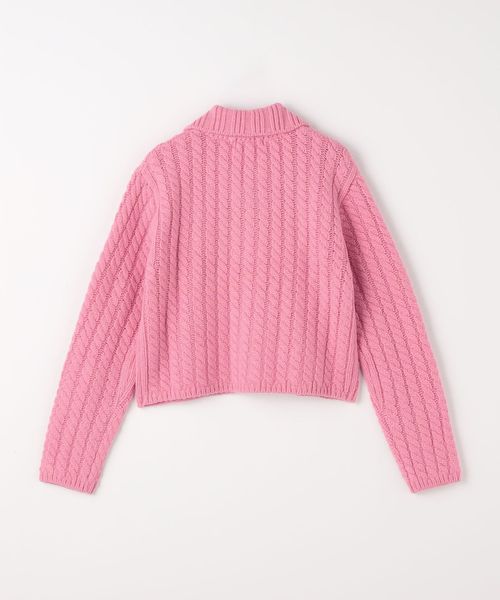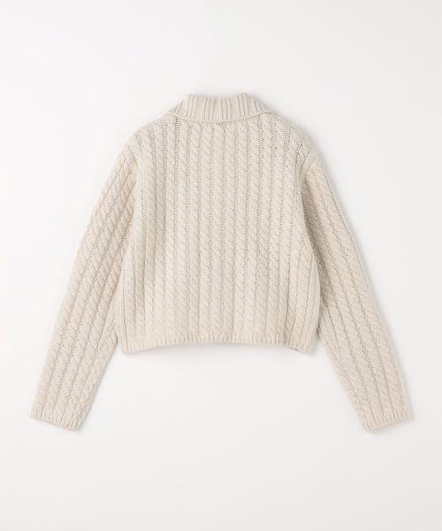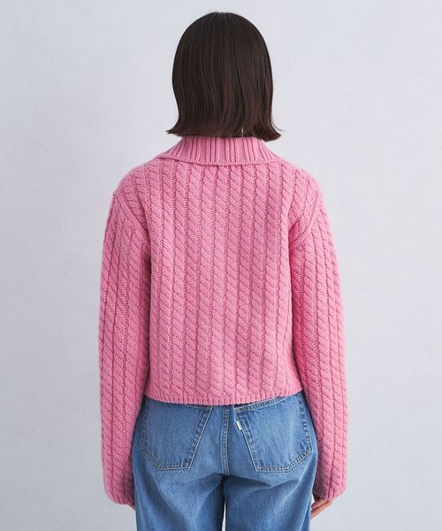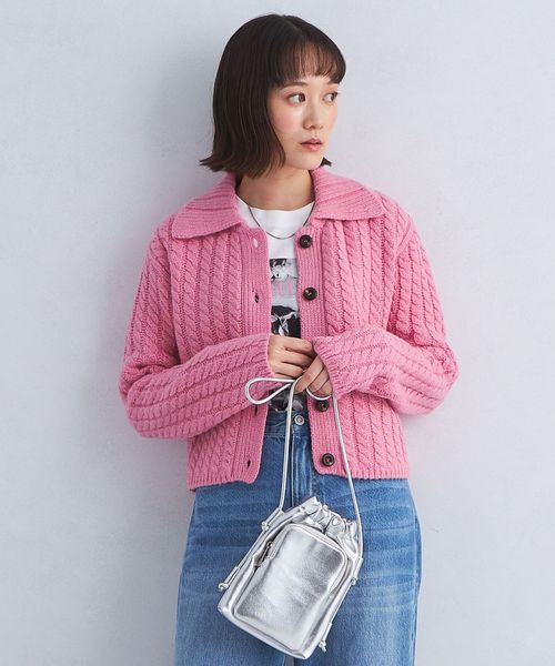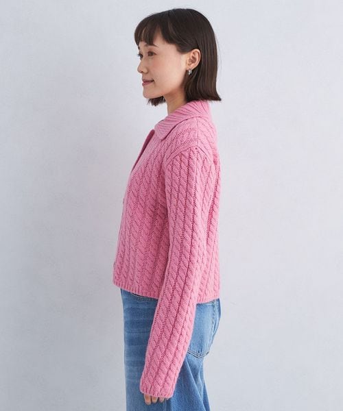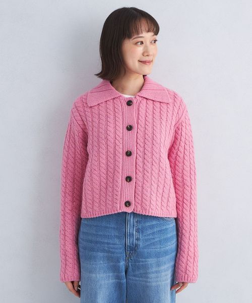 目が立った存在感のあるケーブル編みが魅力のカーディガン。