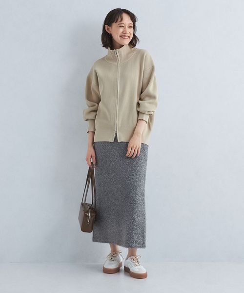 ほどよい肉感のあるニット地なので、気温が下がりきらない時期のアウターとしても◎