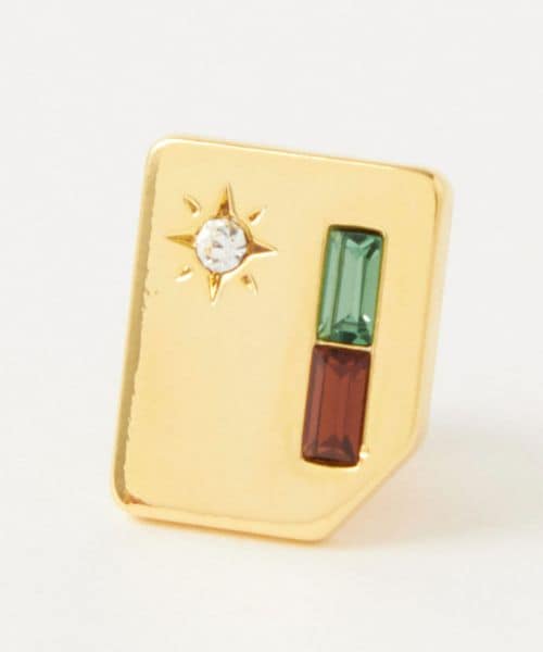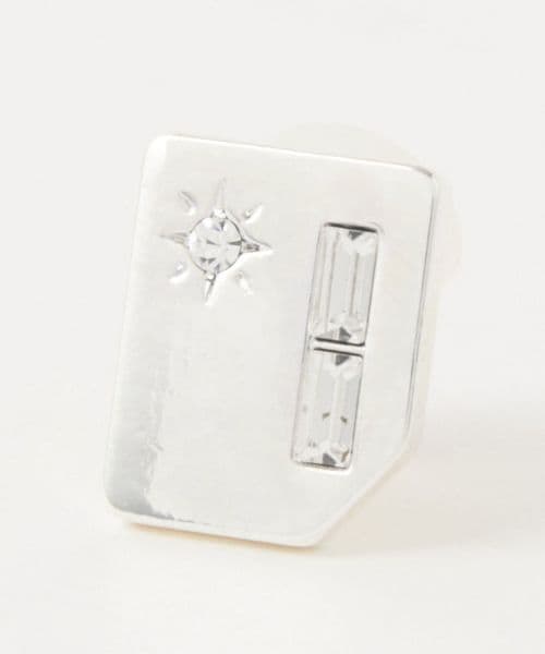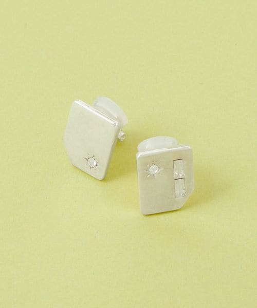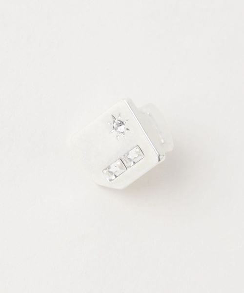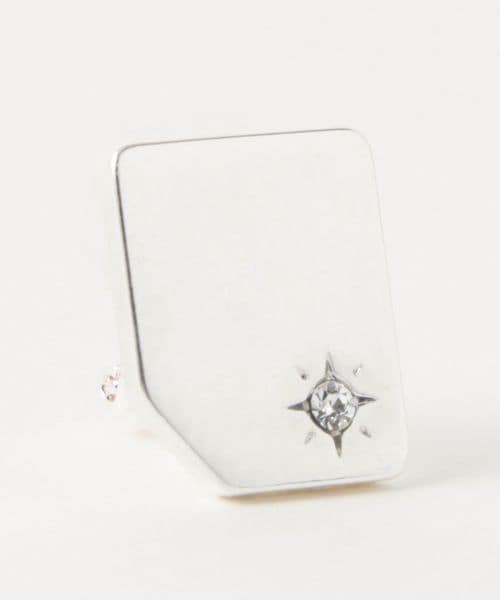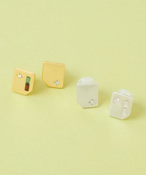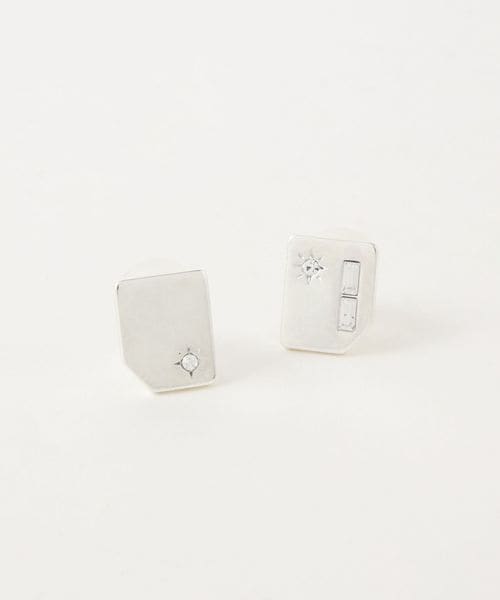 左右アシンメトリーに配置されたビジューがポイントのイヤリング。