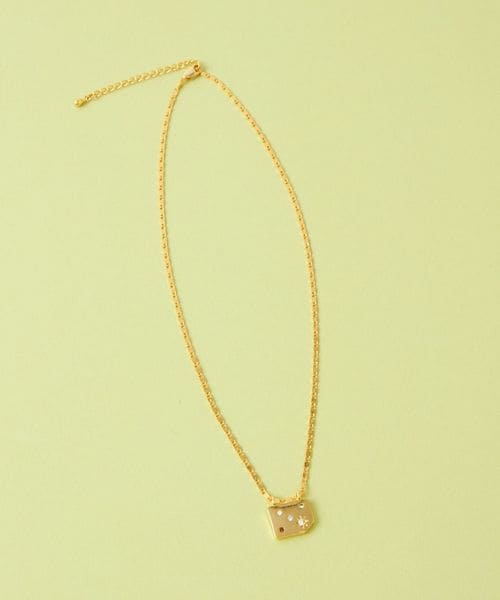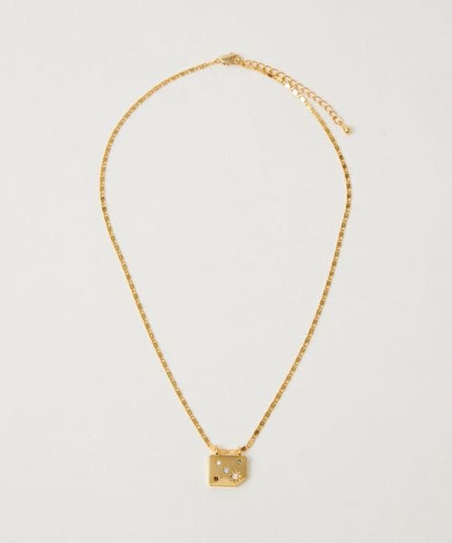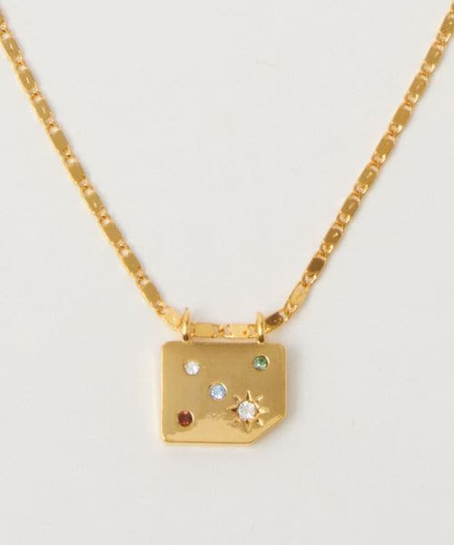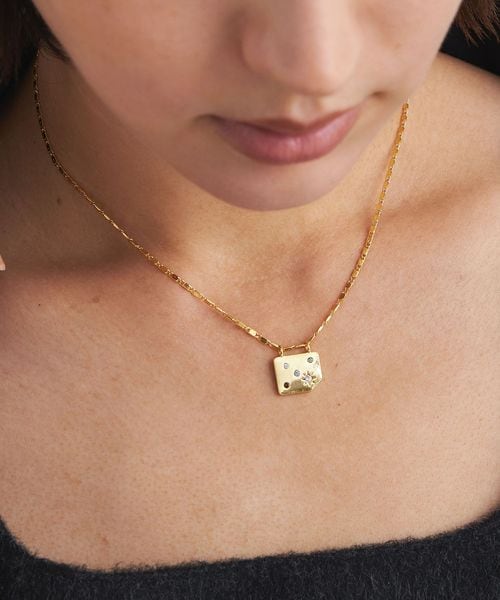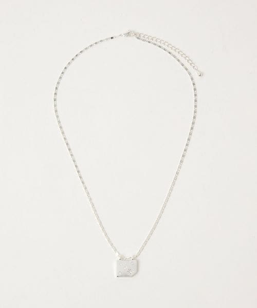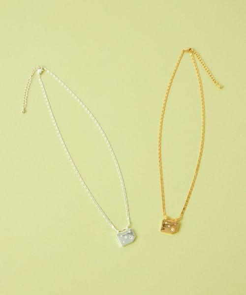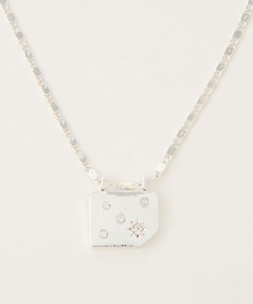 部分的にカットされたニュアンスのあるプレートにビジューを散りばめたデザインのネックレス。
