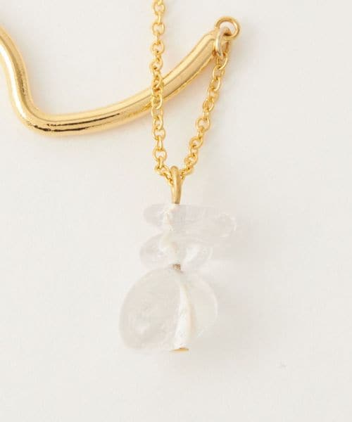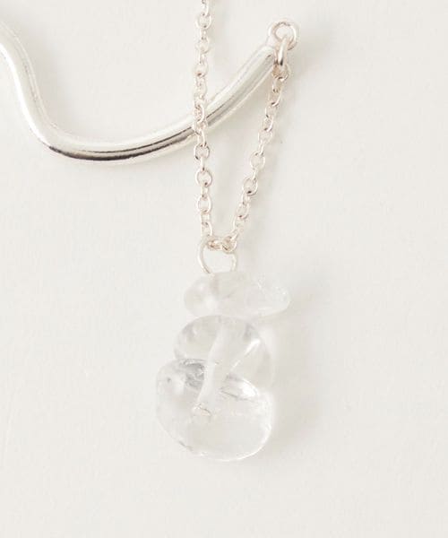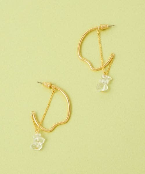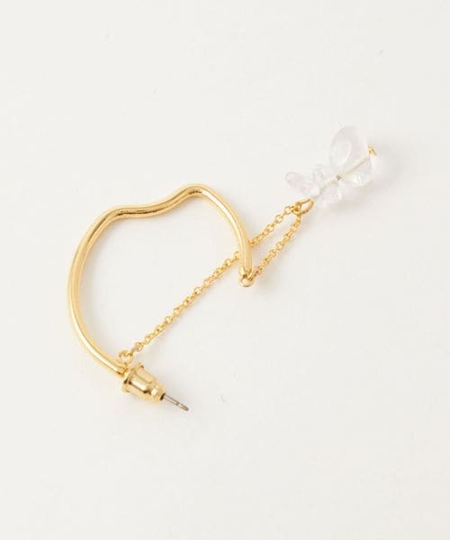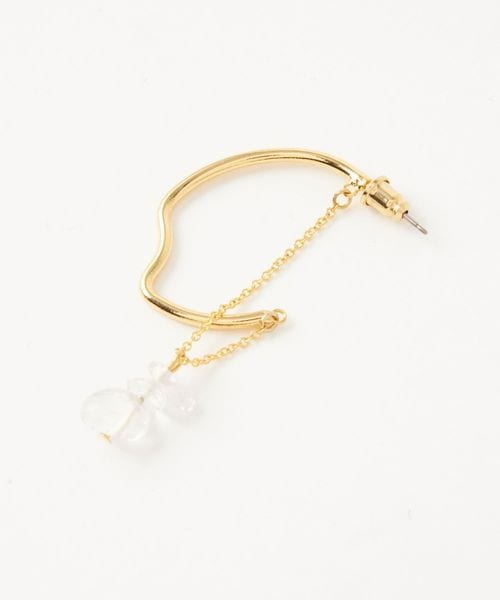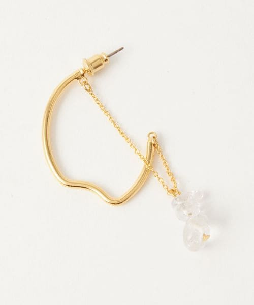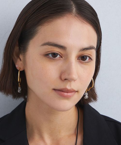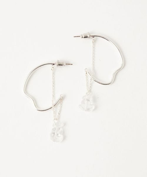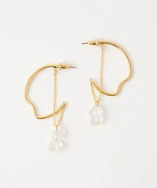 ニュアンスのある形状のフープに水晶が繊細に揺れるデザインのピアス。