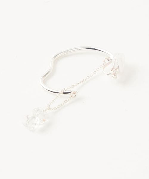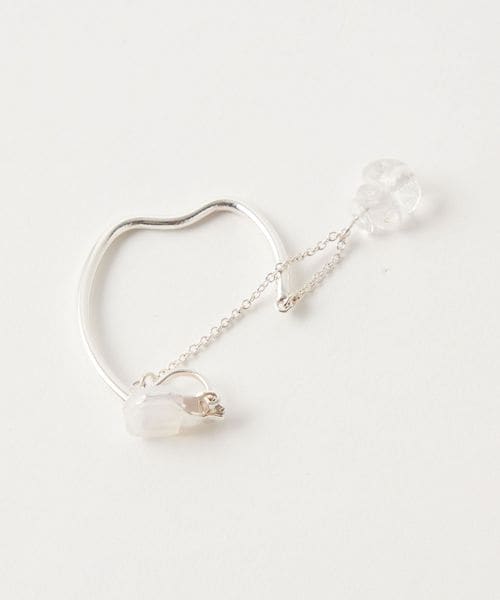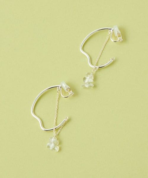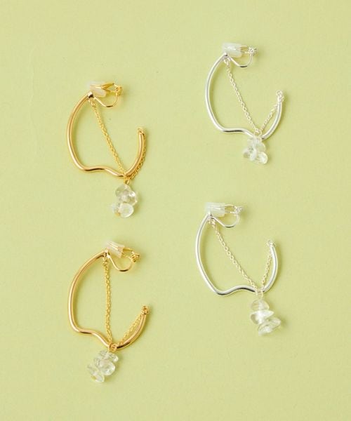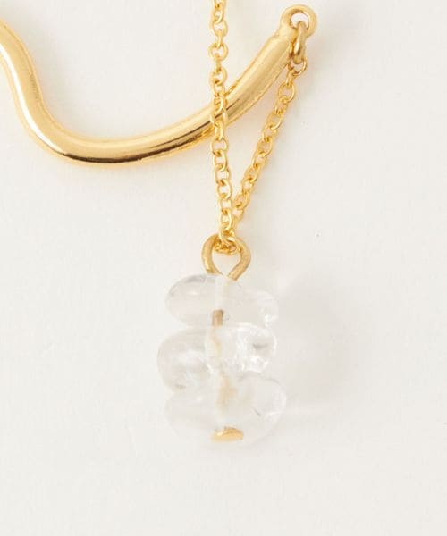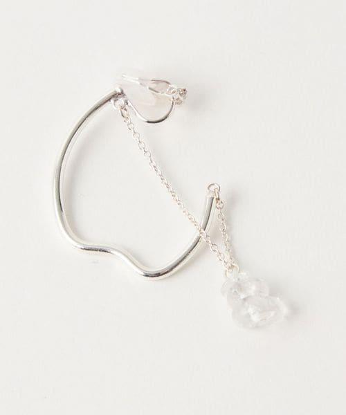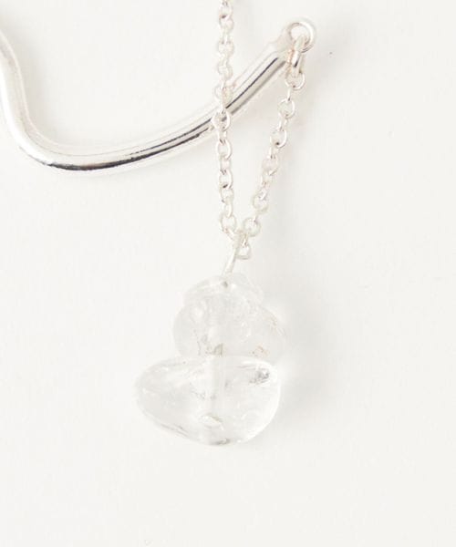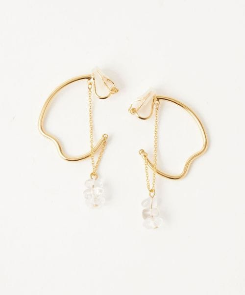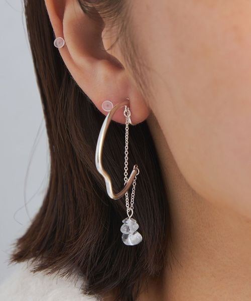 ニュアンスのある形状のフープに水晶が繊細に揺れるデザインのイヤリング。