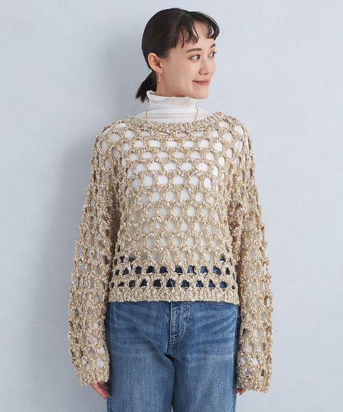 ざっくりとした凹凸のあるメッシュ編みが存在感のあるニット。