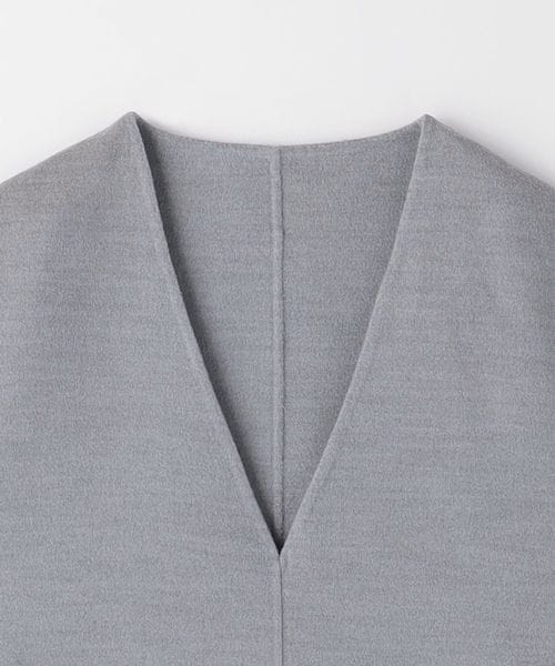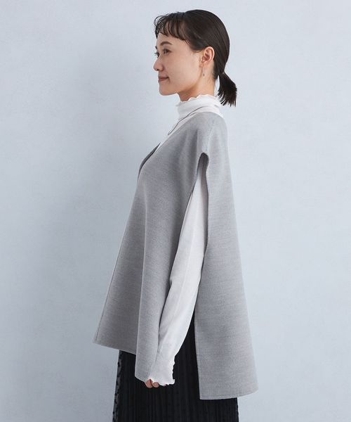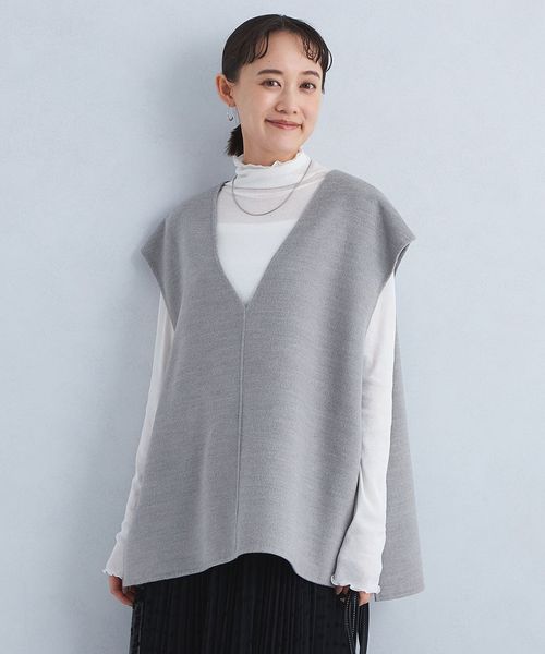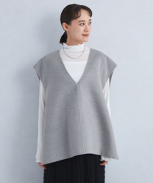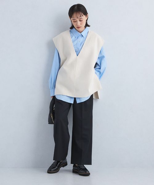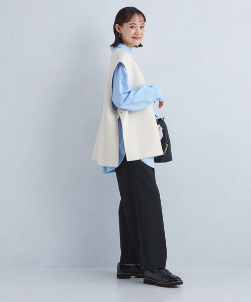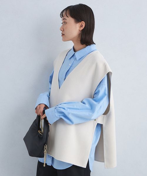 シアー感のあるブラウスやカットソーとのレイヤードスタイルがおすすめ。