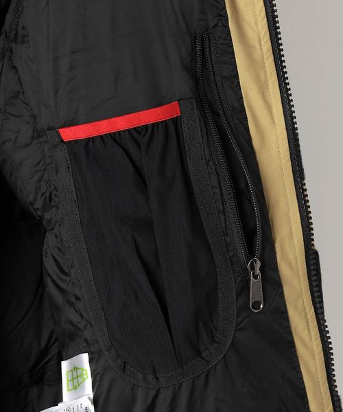 中わた入りの内襟やフロントのダブルフラップなどでコールドスポットを軽減。