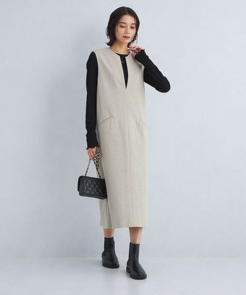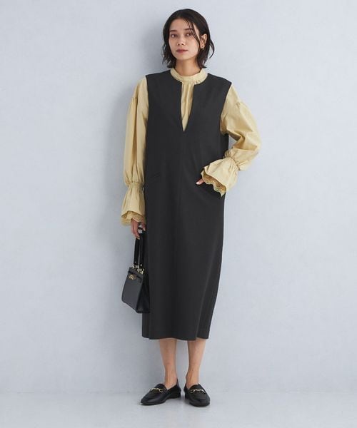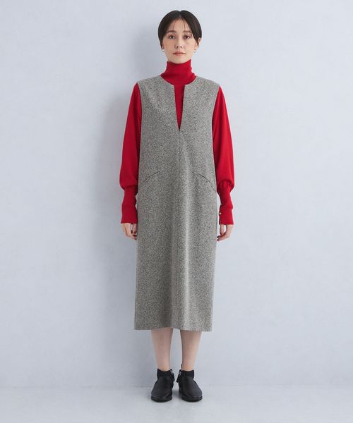 こなれた着こなしが叶うキーネックのジャンパースカート