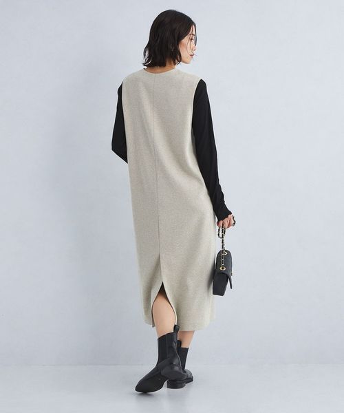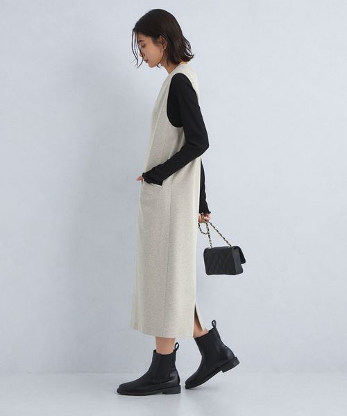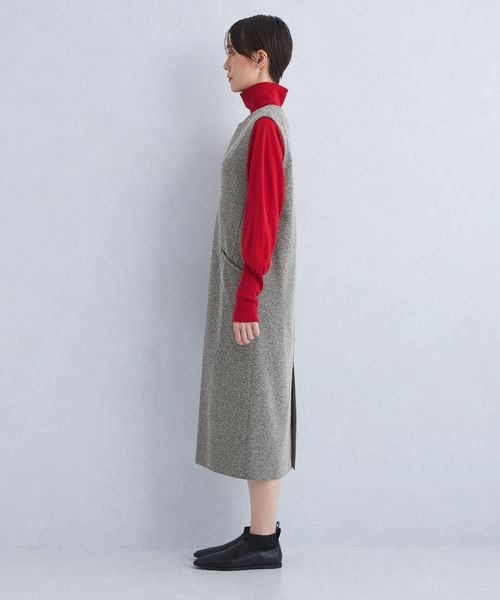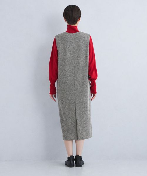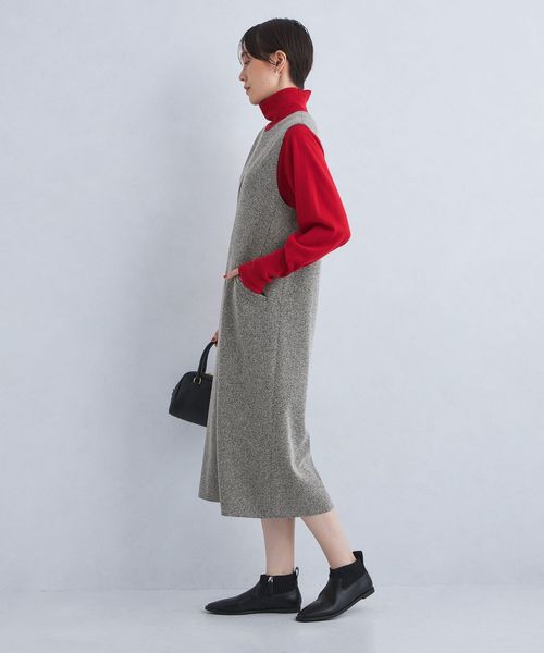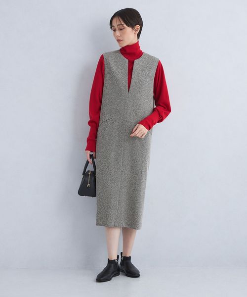 深めのキーネックデザインが大人な雰囲気のジャンスカ。