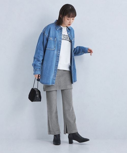 一枚でレイヤード見えするイージーなスカートパンツ。