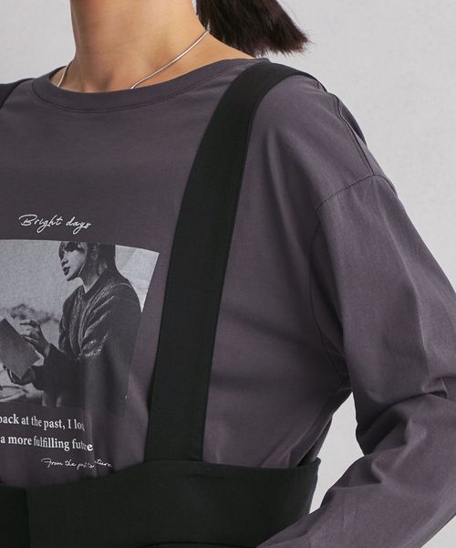 サスペンダーデザインがポイントのパンツ。