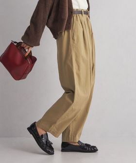 ベルトでウエストをぎゅっとしめた着こなしがおすすめ。