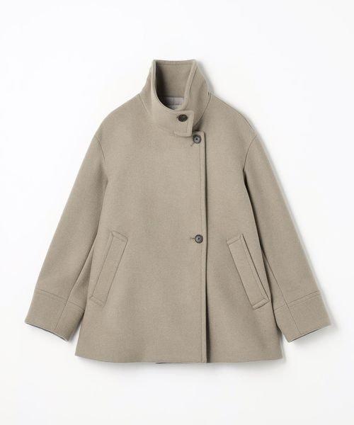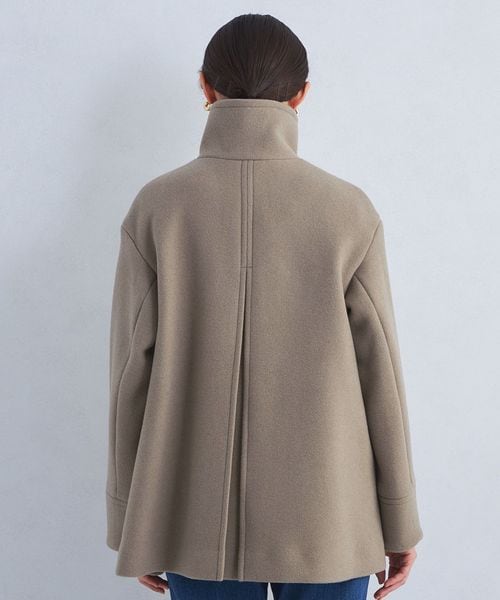 ご好評いただいているスタンドカラーデザインのミドル丈コートが、素材を変更して登場!